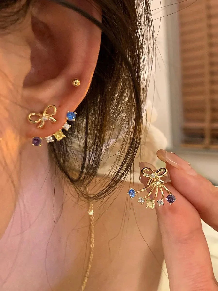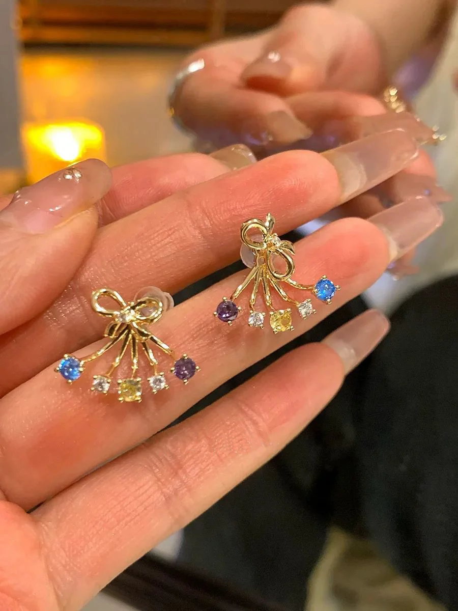 Lunivop New Fashion Colorful Zirconia Bow Stud Earrings for Women Trendy Cute Sweet Earrings Jewelry