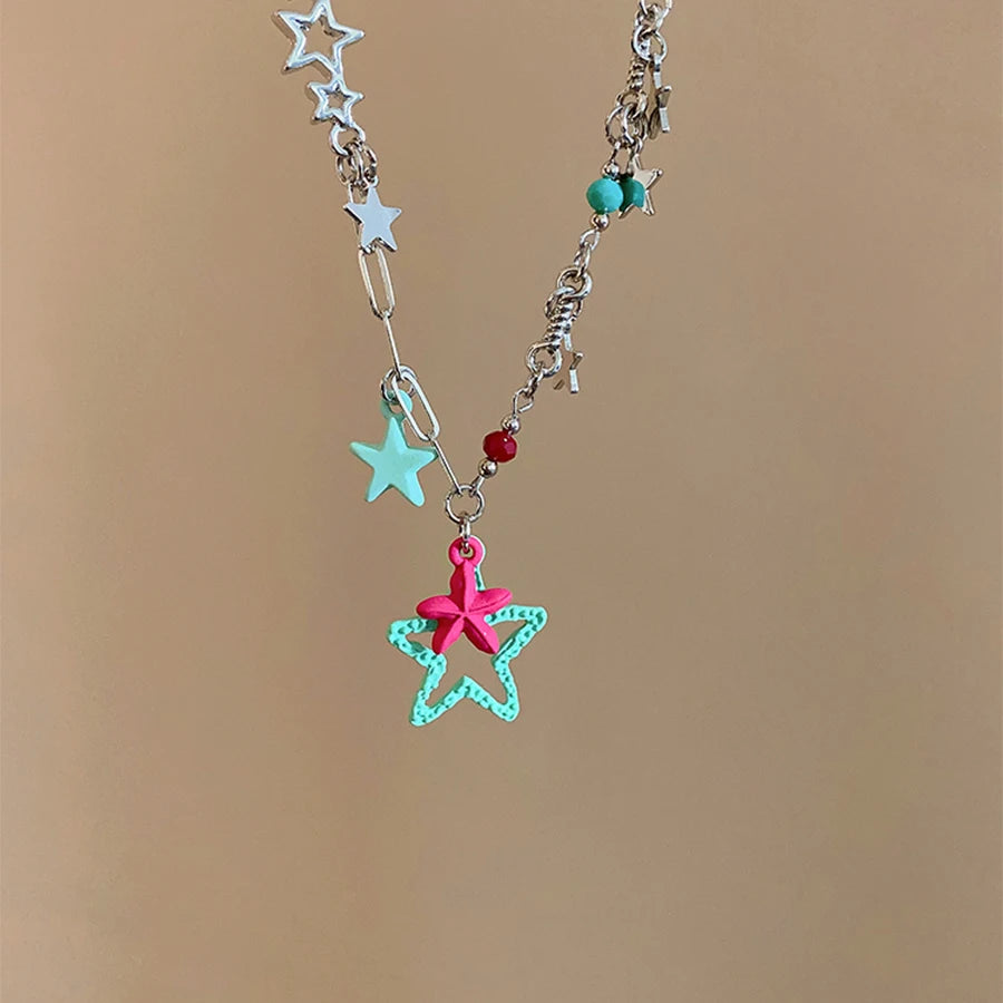 Lunivop New Fashion Cute Pink Green Star Pendant Necklace for Women Niche Design Charms Necklace Sweet Elegant Vacation Party Jewelry