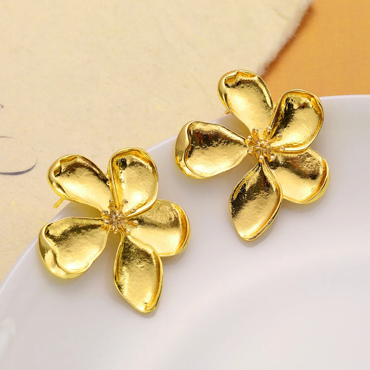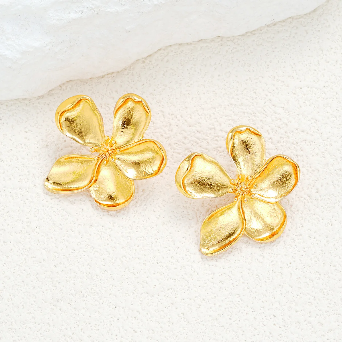 Lunivop New Fashion Exaggerated Gold Metal Luxury Flower Stud Earrings for Women French Retro Earrings Party Jewelry Gift