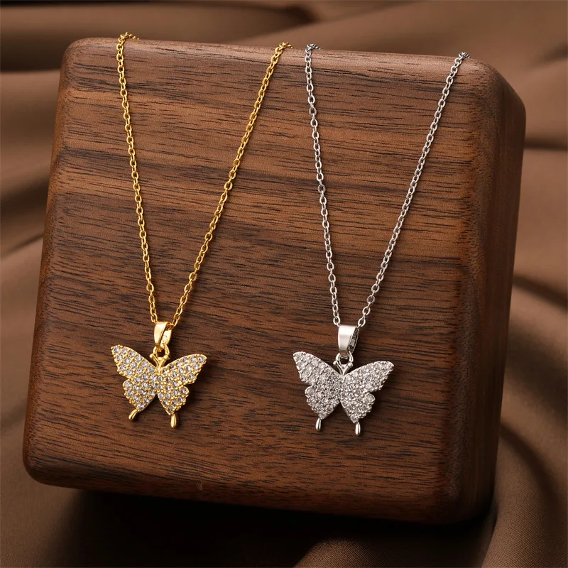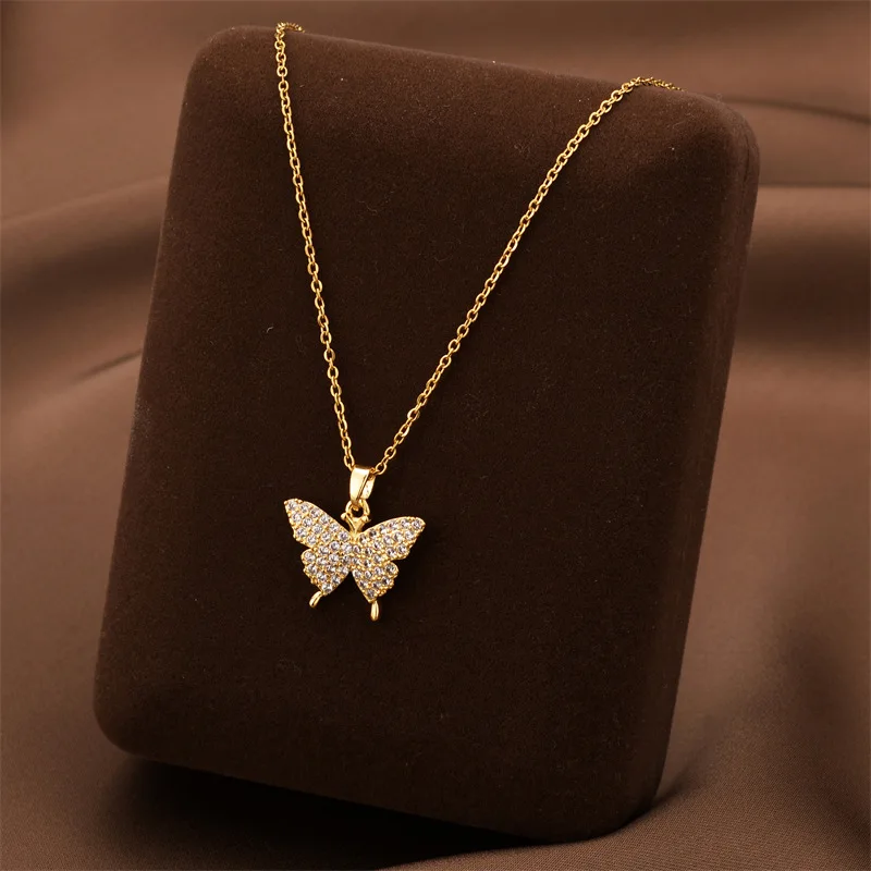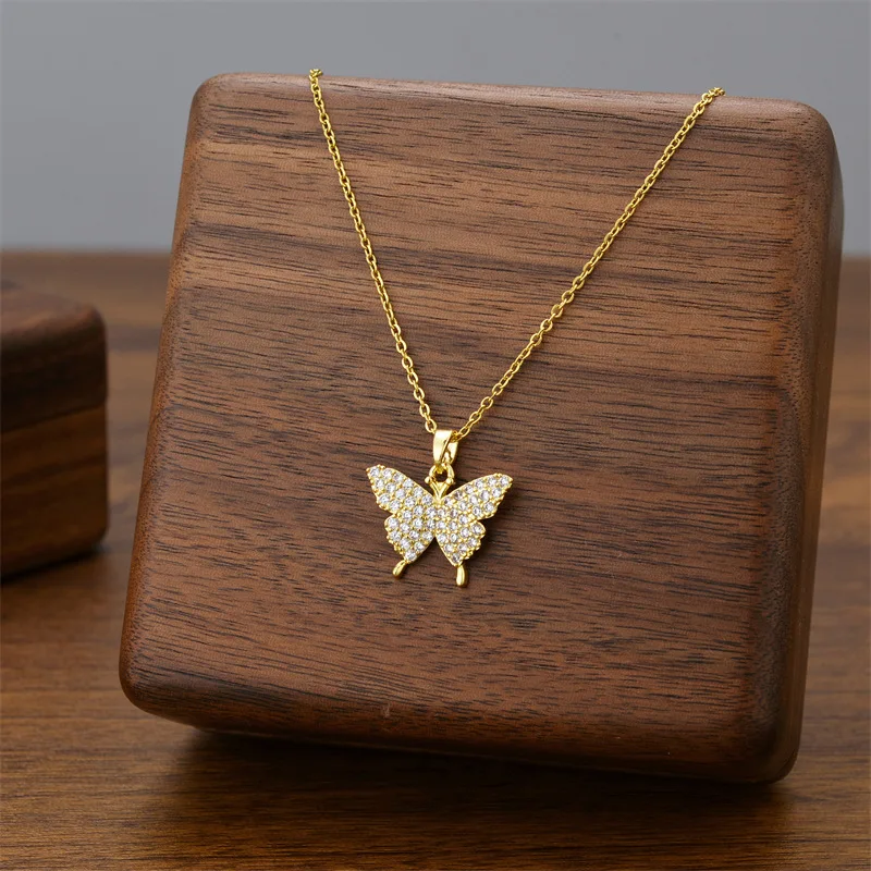 Lunivop New Fashion Exquisite Micro Inlaid Zircon Butterfly Pendant Necklace for Women Girls Versatile Collarbone Chain Necklace Jewelry