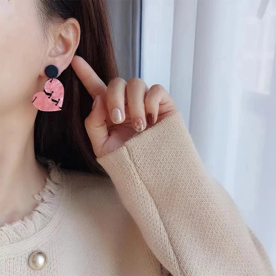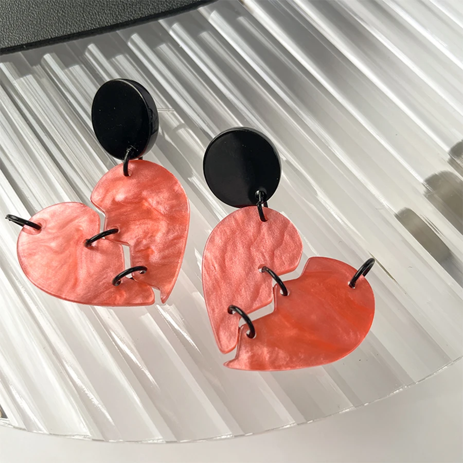 Lunivop New Fashion Personality Suturing Pink Broken Heart Earrings for Women Niche Design Acrylic Studs Sweet Cool Party Jewelry Gifts