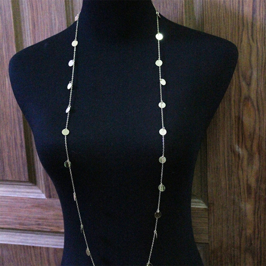 Lunivop New Fashion Simple Golden Silver Plated Circular Disc Long Chain Necklace for Women Exquisite Alloy Chain Elegant Party Jewelry