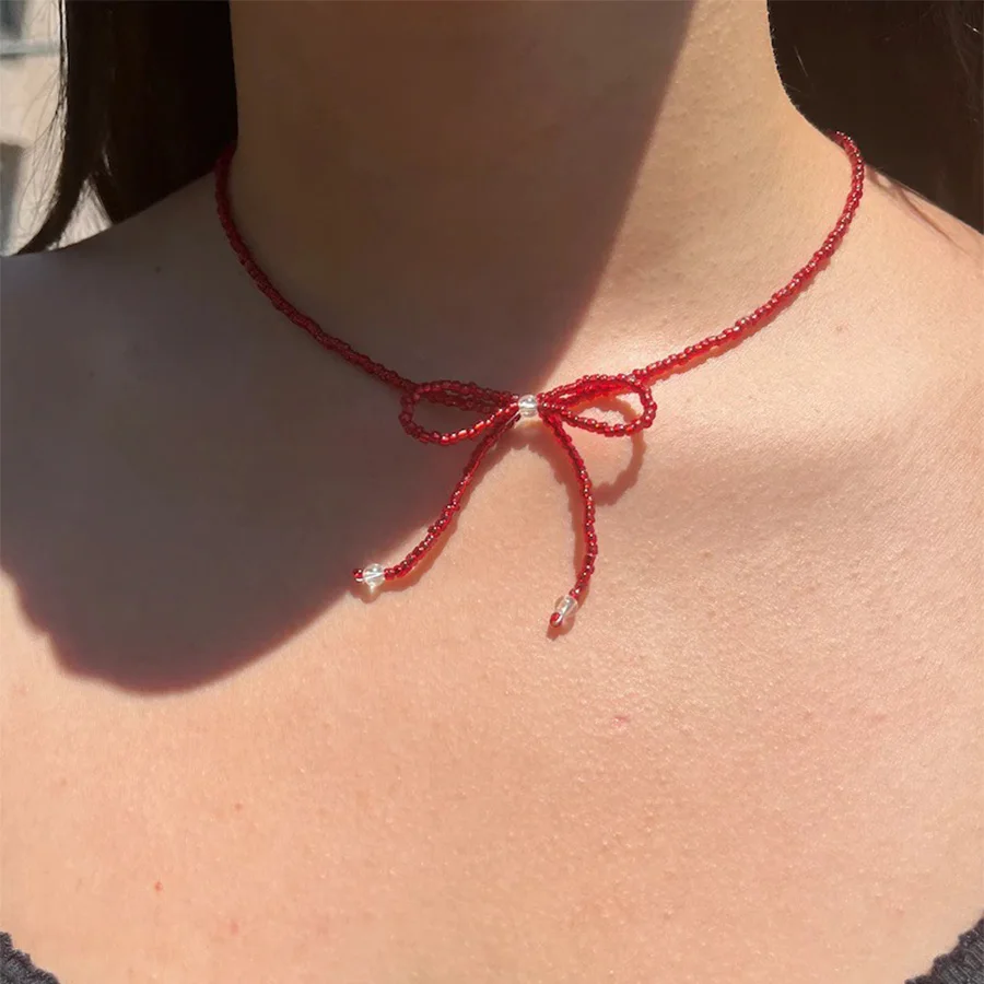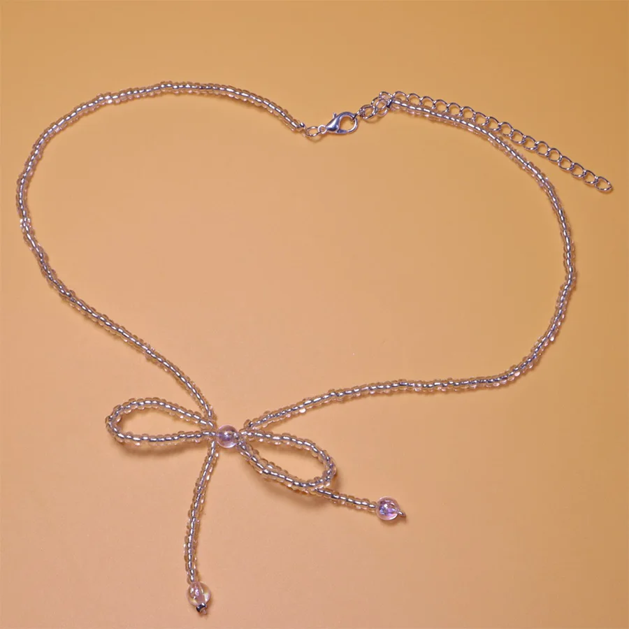 Lunivop New Fashion Simple Solid Color Beaded Necklace for Women Niche Design Bow Necklace Sweet Cool Party Jewelry Beach Vacation Gifts