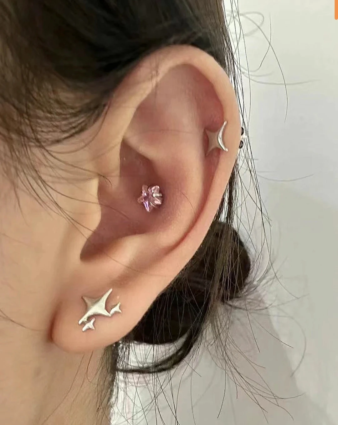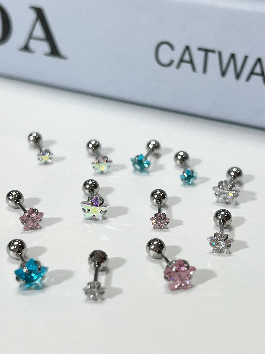 Lunivop New Fashion Star Screw Back Stud Earrings for Women Girls Cool Sweet Stainless Steel Cartilage Helix Ear Piercing Party Jewerly