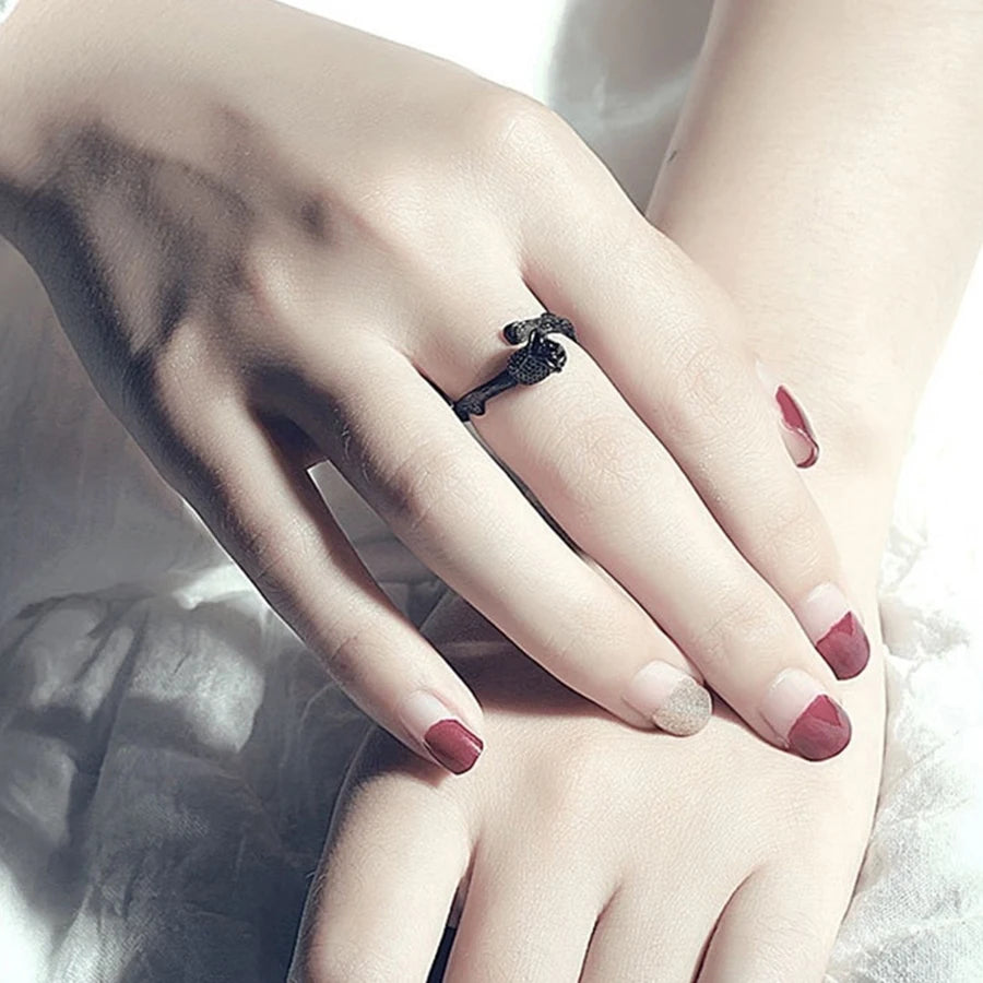Lunivop New Fashion Vintage Black Rose Opening Ring for Women Exquisite Alloy Adjustable Ring Elegant Niche Design Party Jewelry Gifts