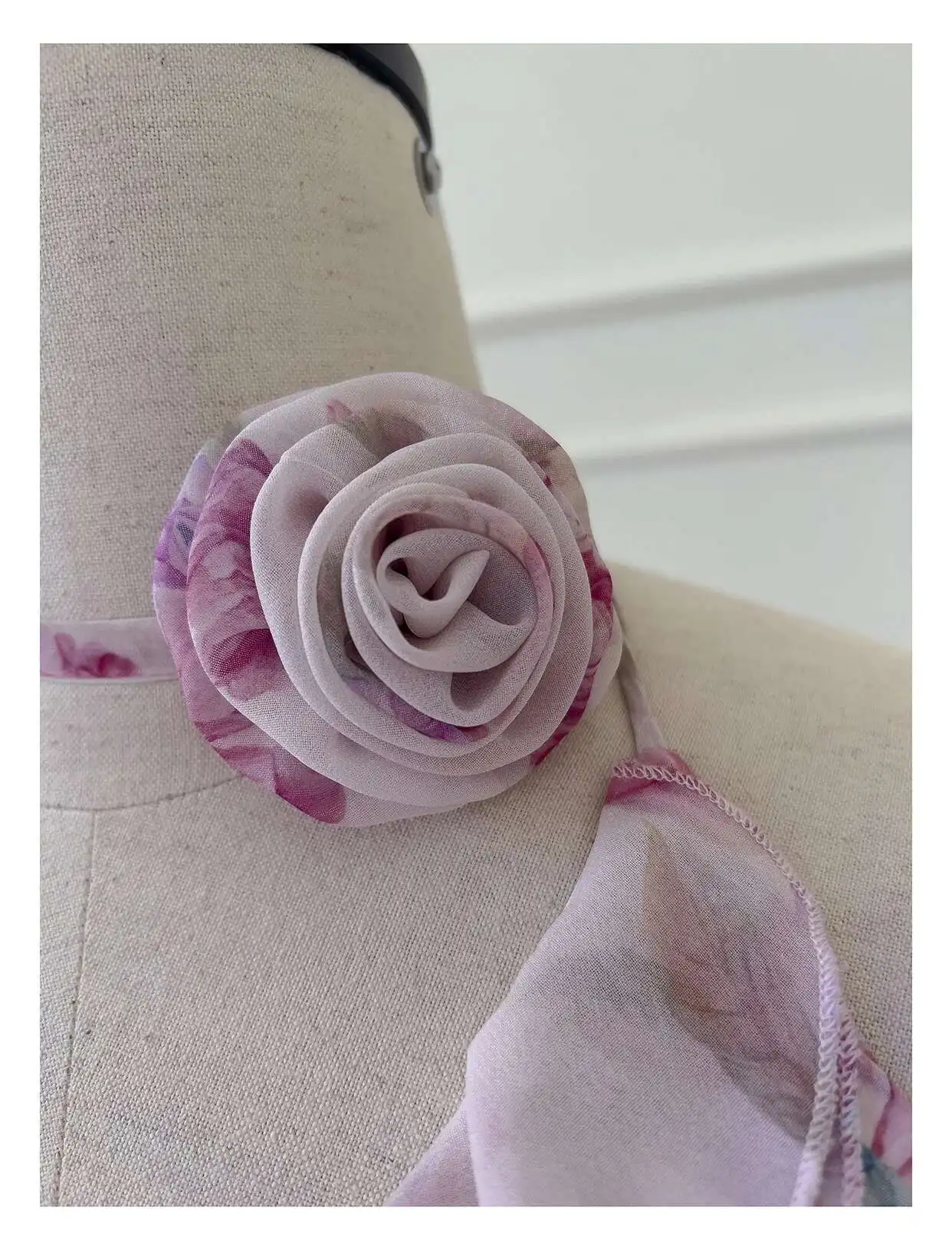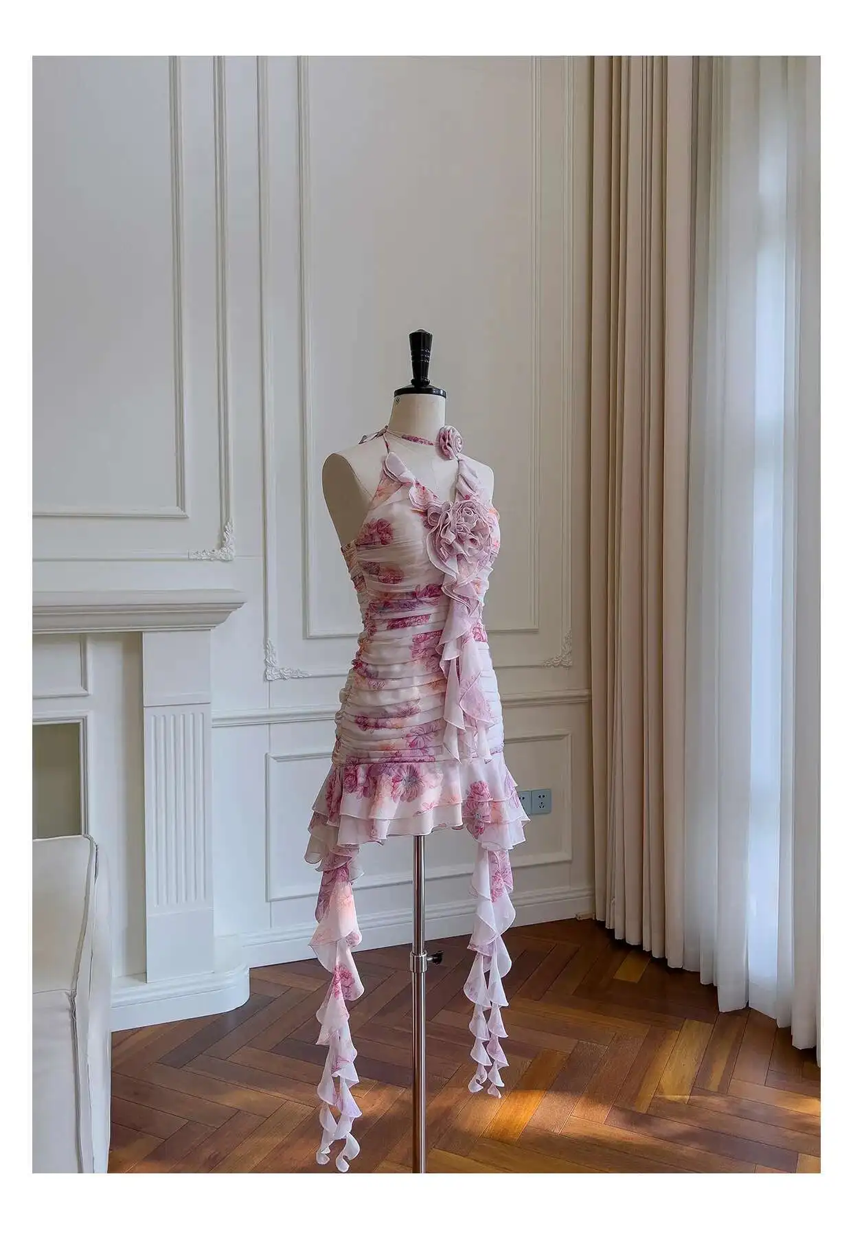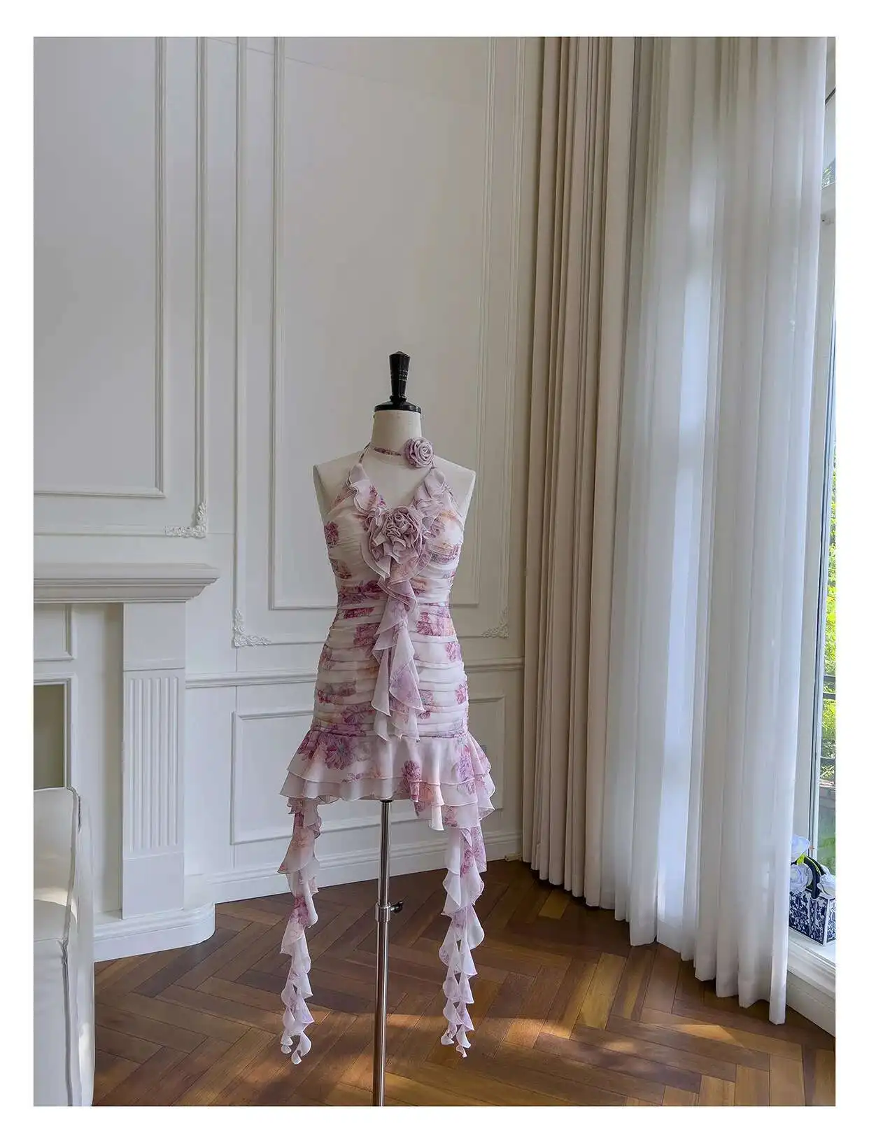 Lunivop New Floral Ruffle 3D Flower Decoration Cute Women Dress Halter Neck Backless Sleeveless Short Dresses Female