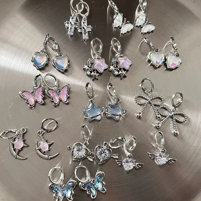 Lunivop New Harajuku Vintage Goth Pink Peach Heart Drop Earrings For Women Grunge Punk Halloween Aesthetic Y2k Fairy Jewelry