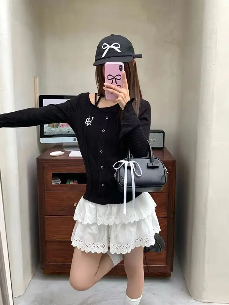 Lunivop New Kawaii High Waist Lace Mini Skirt for Women Girl Cute Lolita Skirt Japanese Harajuku Fashion Soft Girl Clothing