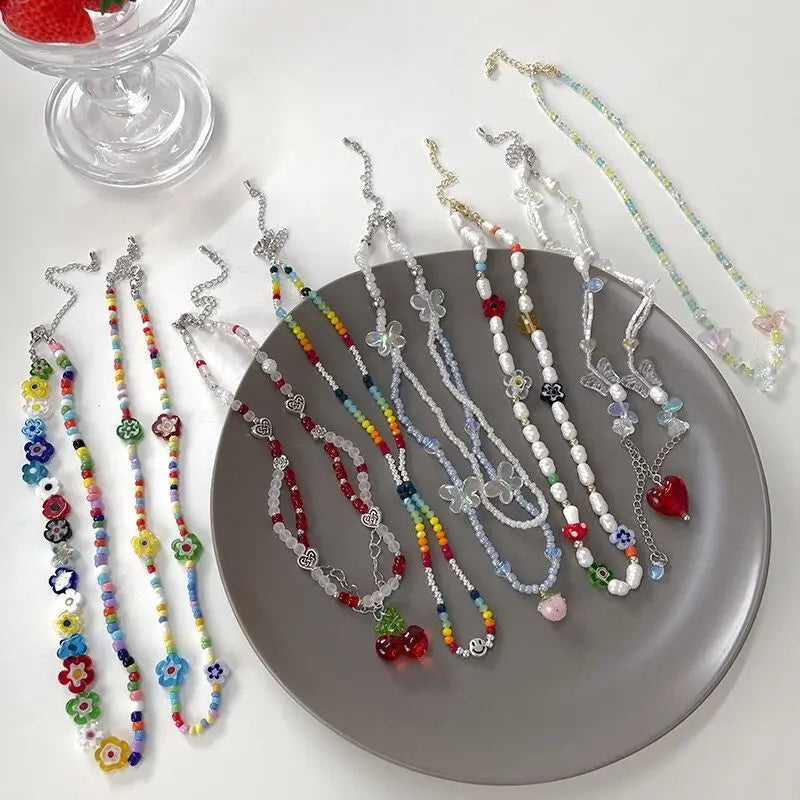 Lunivop New Korea Summer Lovely Colorful Flowers Daisy Transparent Crystal Beading Strand Short Choker Necklace for Women