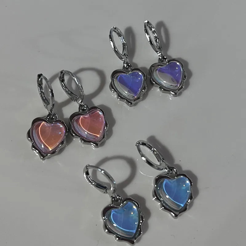 Lunivop New Laser Opal Love Heart Crystal Planet Drop Earrings for Women Sweet Romantic Dangle Earrings Trend Y2K Jewelry
