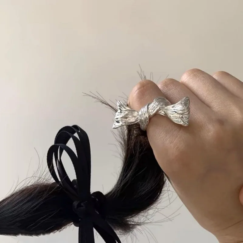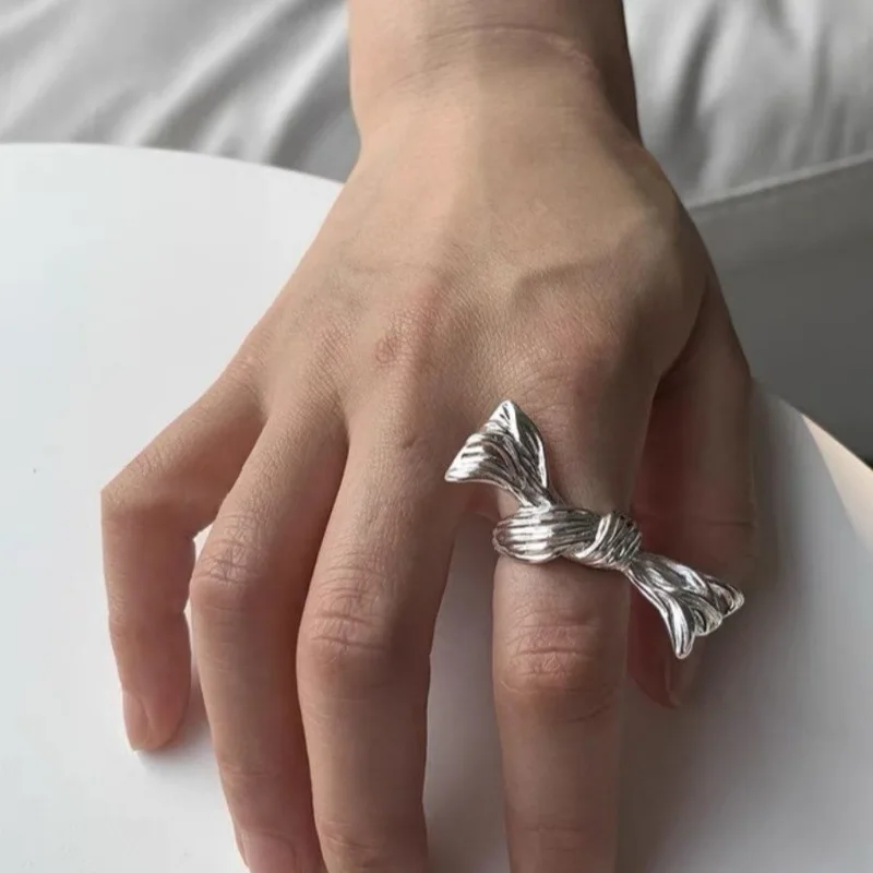 Lunivop New Punk Sweet Cool Exaggerated Silver Metal Bow Ring for Women Girls Fashion Gothic Bow Rings Party Jewelry Gift