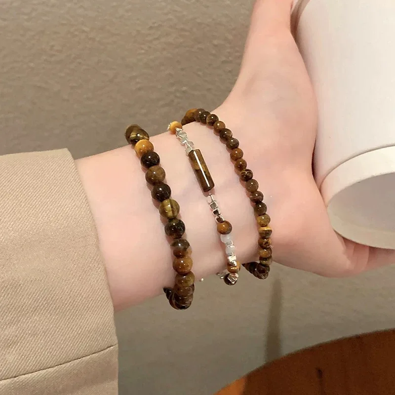 Lunivop New Retro Fashion Natural Stone Tiger-eye Beaded Bracelet for Women Men Couple Niche Design Party Jewelry Cosplay Gifts