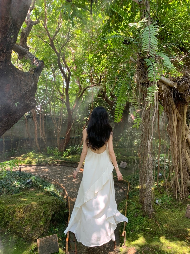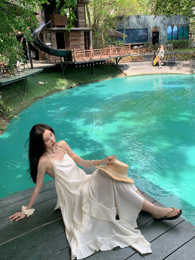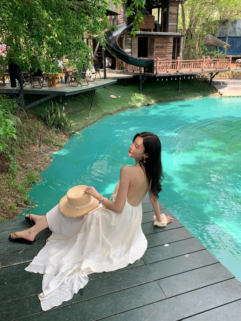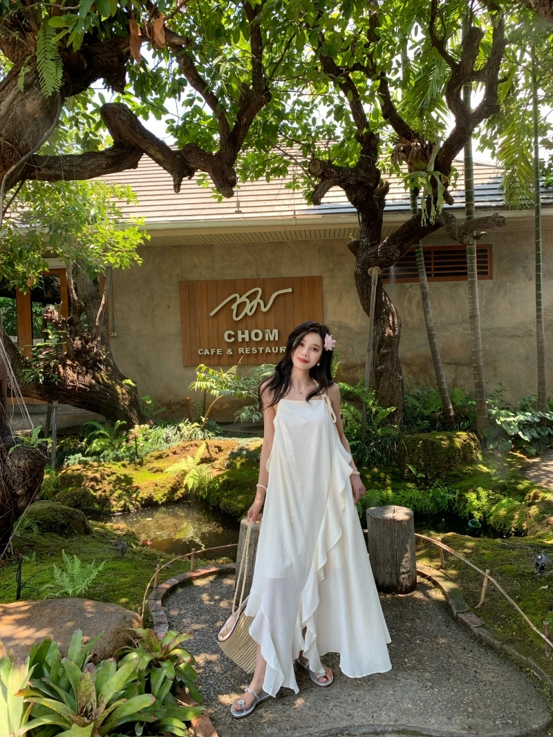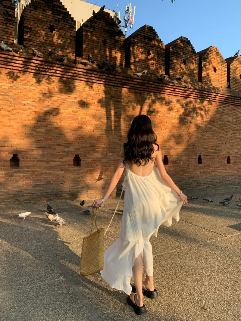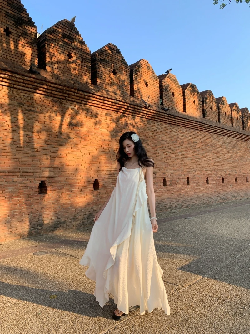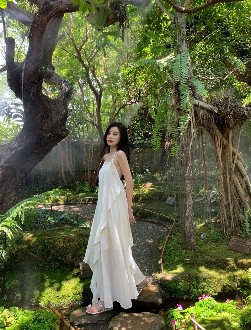 在逃公主 氛围感挂脖小白裙