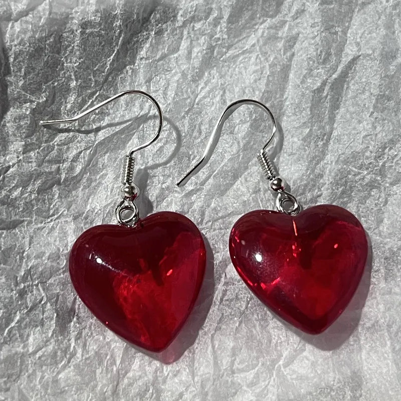 Lunivop New Sweet Cool Harajuku Red Glass Love Heart Earrings for Women Hot Girls Y2k Punk Bowknot Earring Korean Accessories Gifts