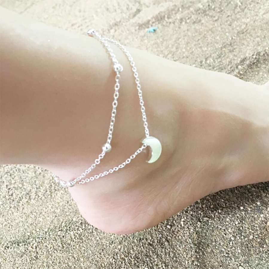 Lunivop New Trendy Boho Double Layered Moon Pendant Anklets for Women Niche Design Elegant Party Jewelry Girlfriend Gifts