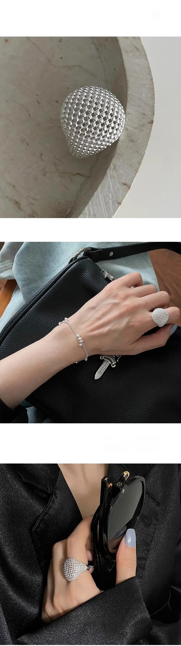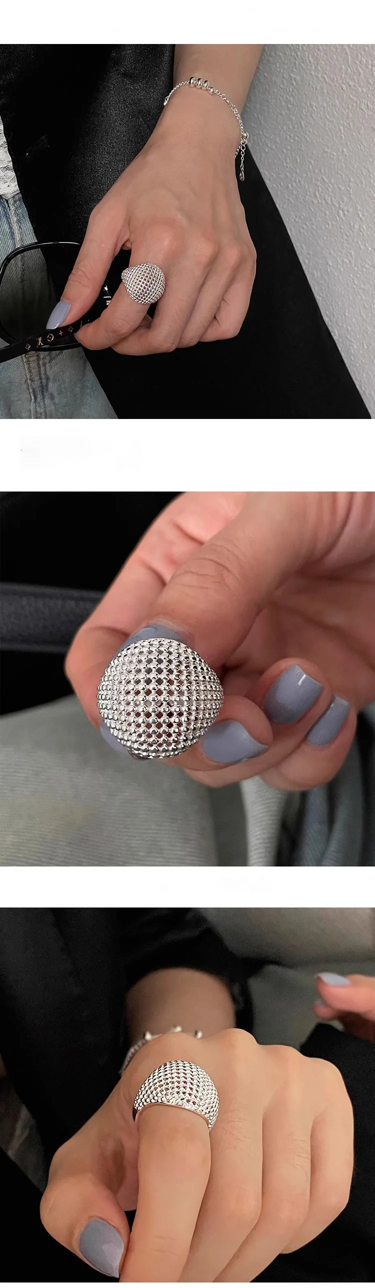Lunivop New Trendy Cool Hollow Mesh Temperament Personality Plating Rings for Women INS Open Adjustable Rings Jewelry Gift