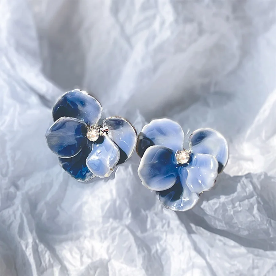 Lunivop New Trendy Cute Blue Red Flowers Earrings for Women Exquisite Needle Studs Sweet Elegant Party Jewelry Gifts