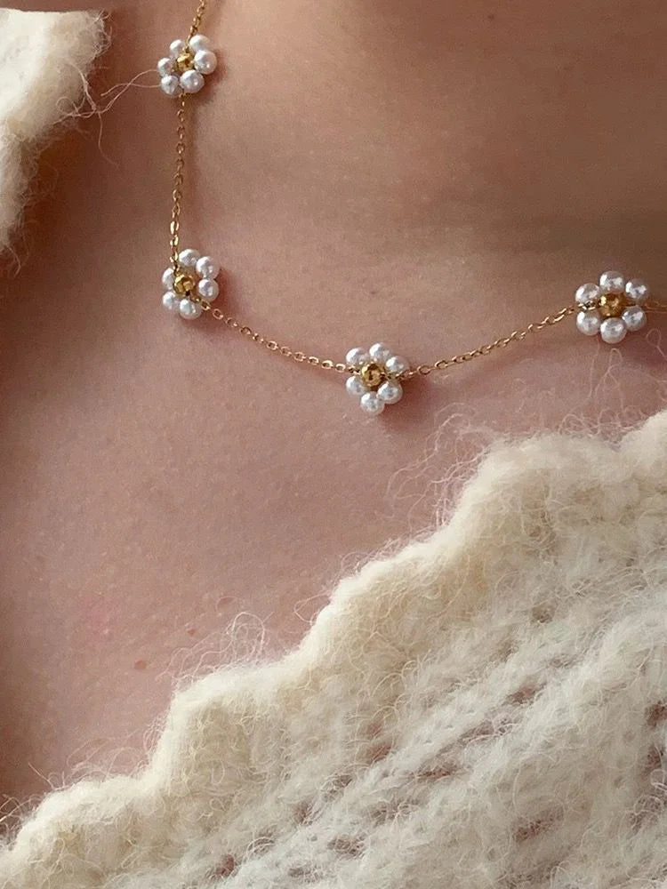 Lunivop New Trendy Flower Fake Pearl Bead Necklace for Women Girls Simple Bohemian Summer Beach Holiday Necklace Jewelry Gift