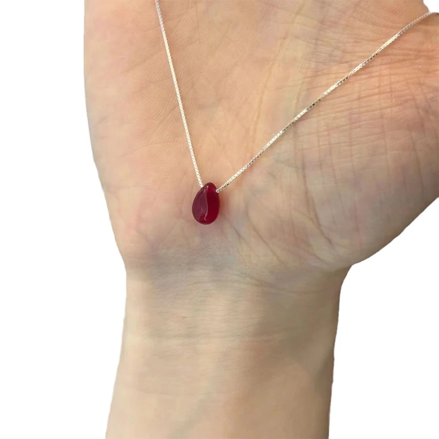 Lunivop New Trendy Minimalist Red Water Drop Pendant Necklace for Women Silver Plated Copper Chain Sweet Elegant Party Jewelry Gifts