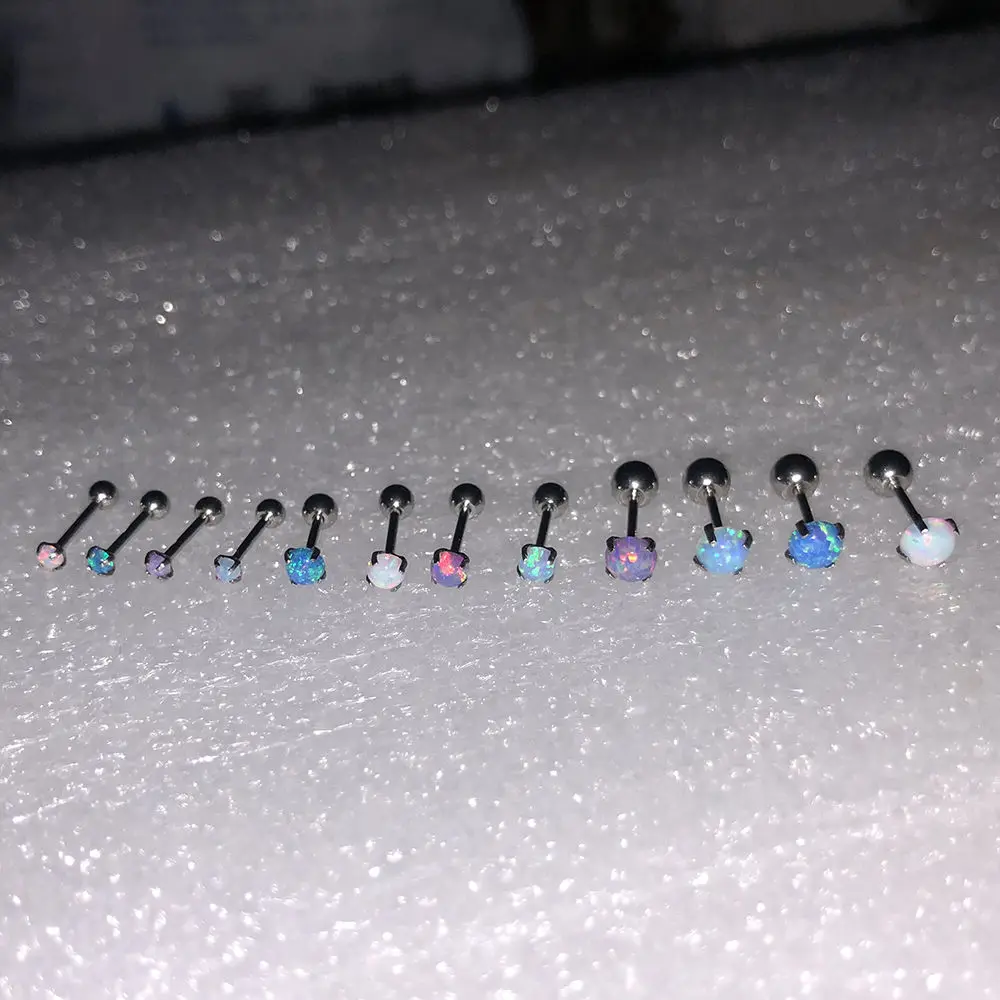 Lunivop New Trendy Opal Stud Earrings for Women Girls Tiny Small Stainless Steel Screw Back Piercing Stud Earrings Party Jewelry Gift