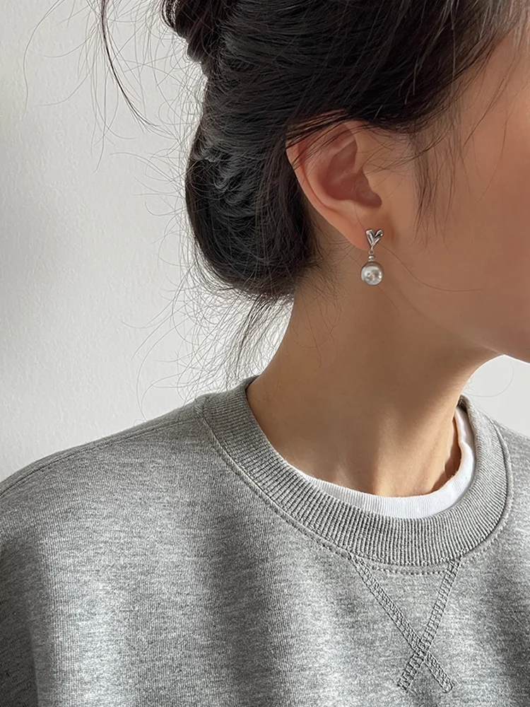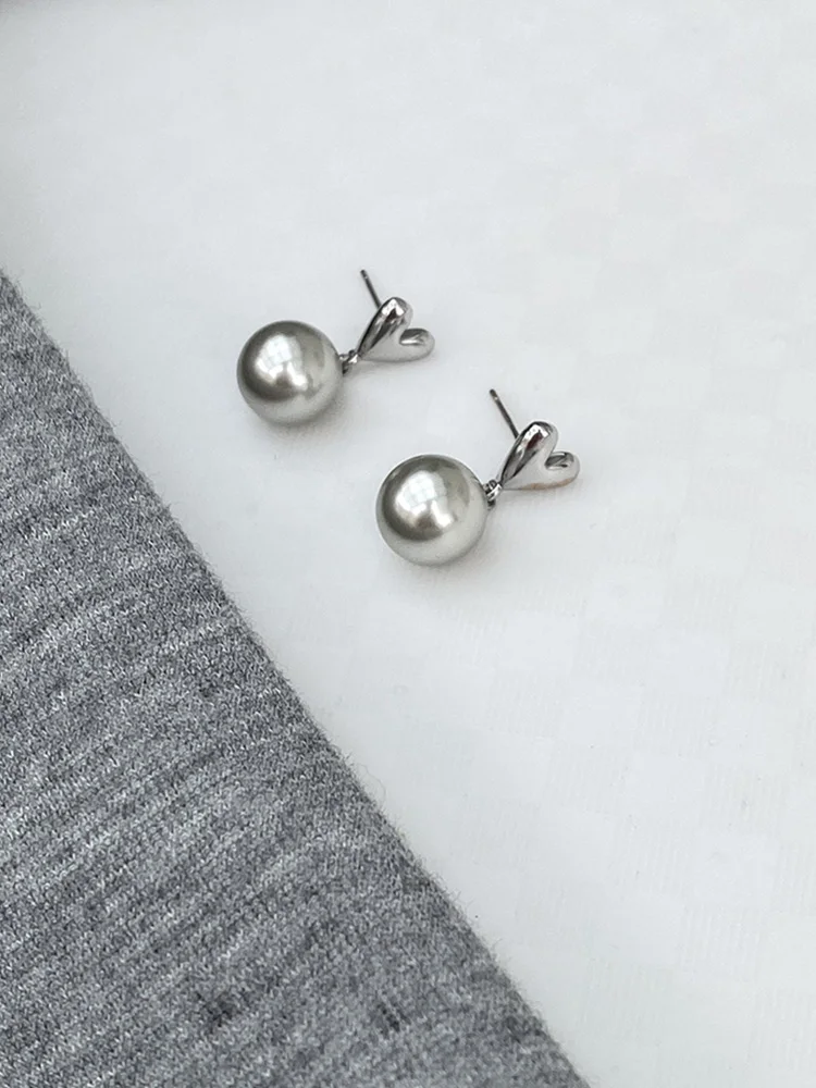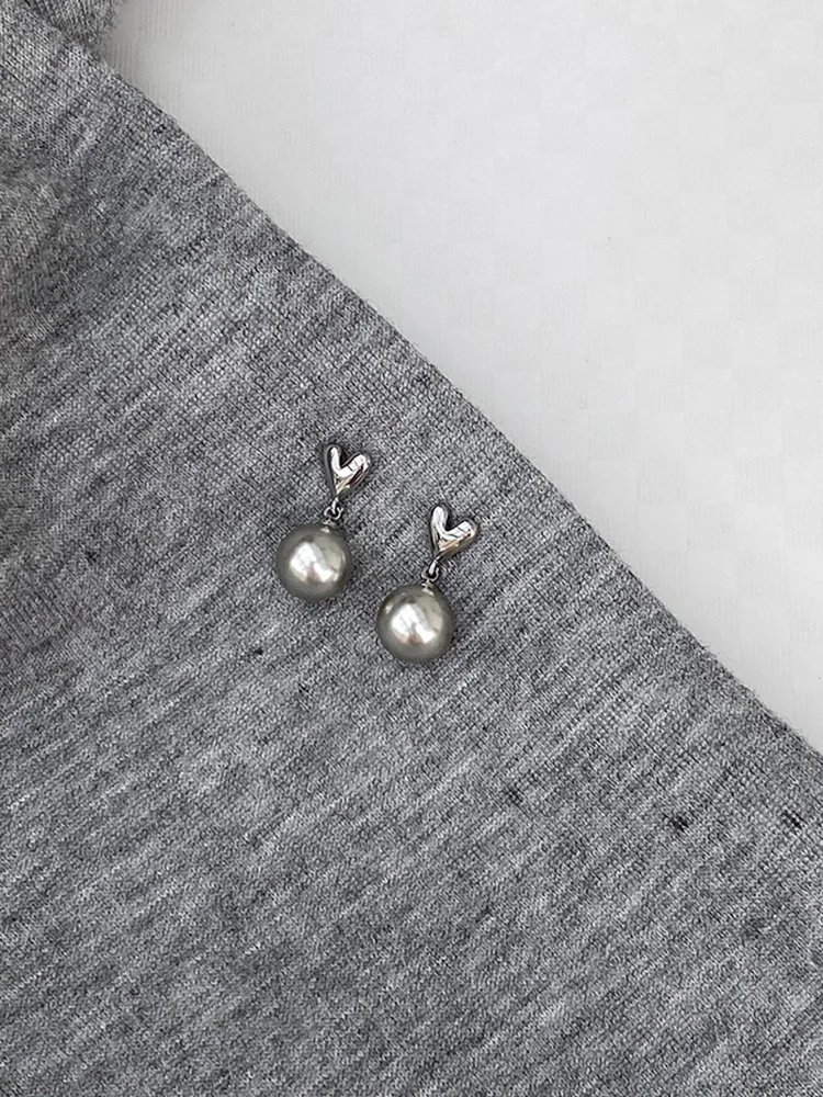 Lunivop New Trendy Simple Advanced Grey Pearl Heart Earrings for Women High-end Silver Needle Studs Sweet Elegant Party Jewelry