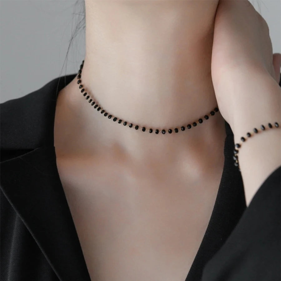 Lunivop New Trendy Simple Black Crystal Beaded Necklace for Women Niche Design Charms Necklace Sweet Elegant Party Jewelry