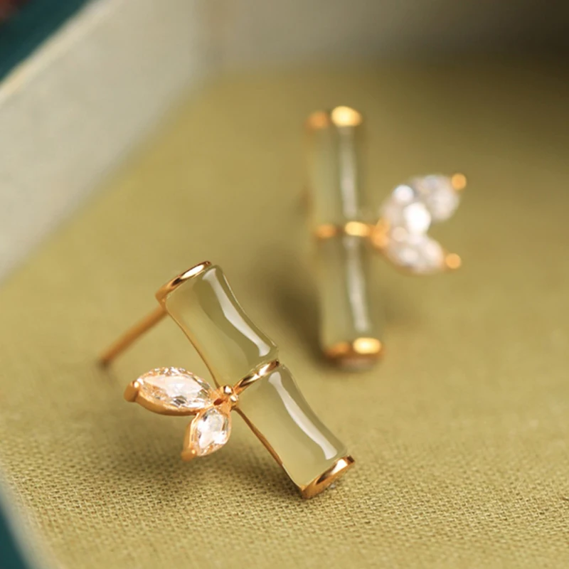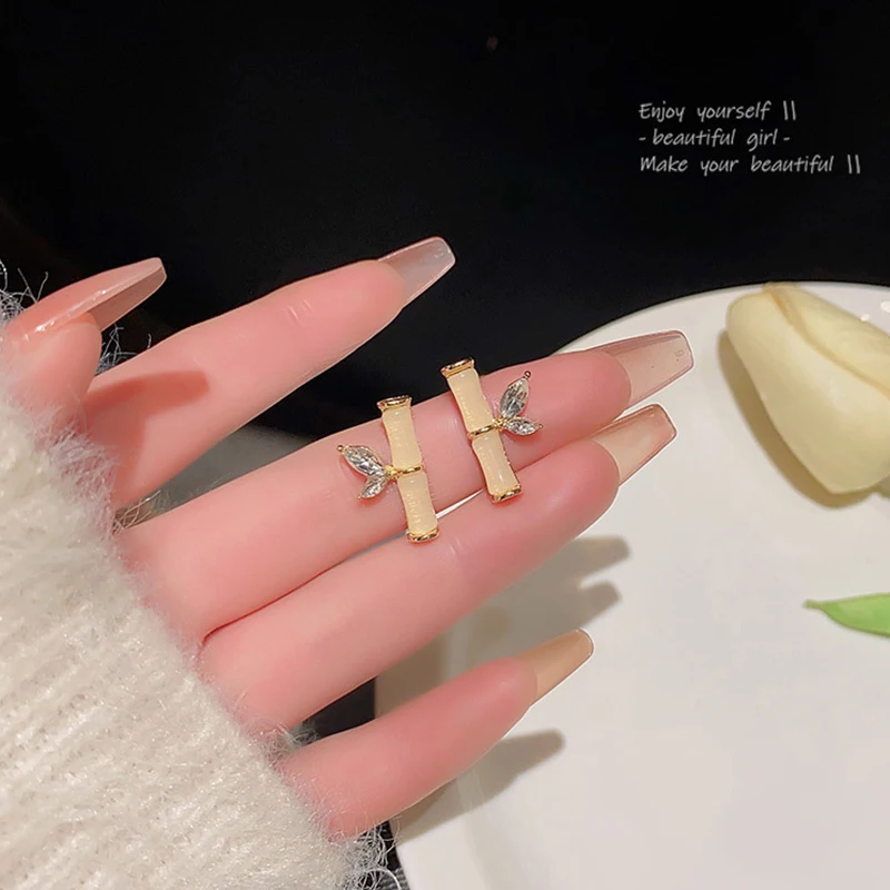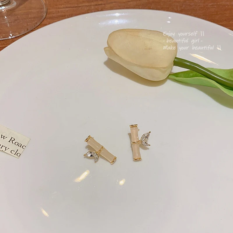 Lunivop New Trendy Simple Golden Bamboo Joint Zircon Studs Earrings for Women Sweet Elegant Piercing Party Jewelry Gifts