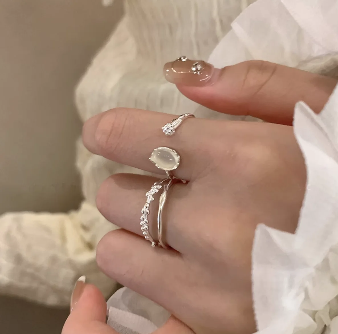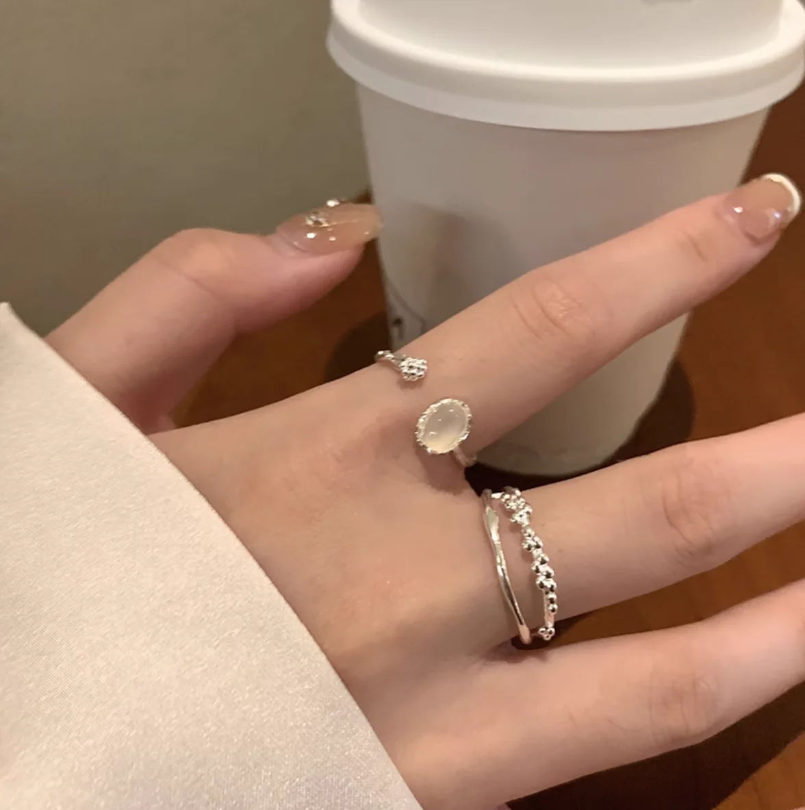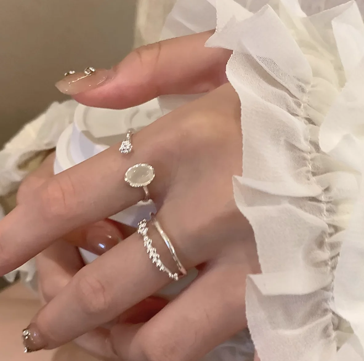 Lunivop New Trendy Simple Irregular Moon Stone Ring for Women Luxury Open Adjustable Finger Ring Fashion Jewelry Gift