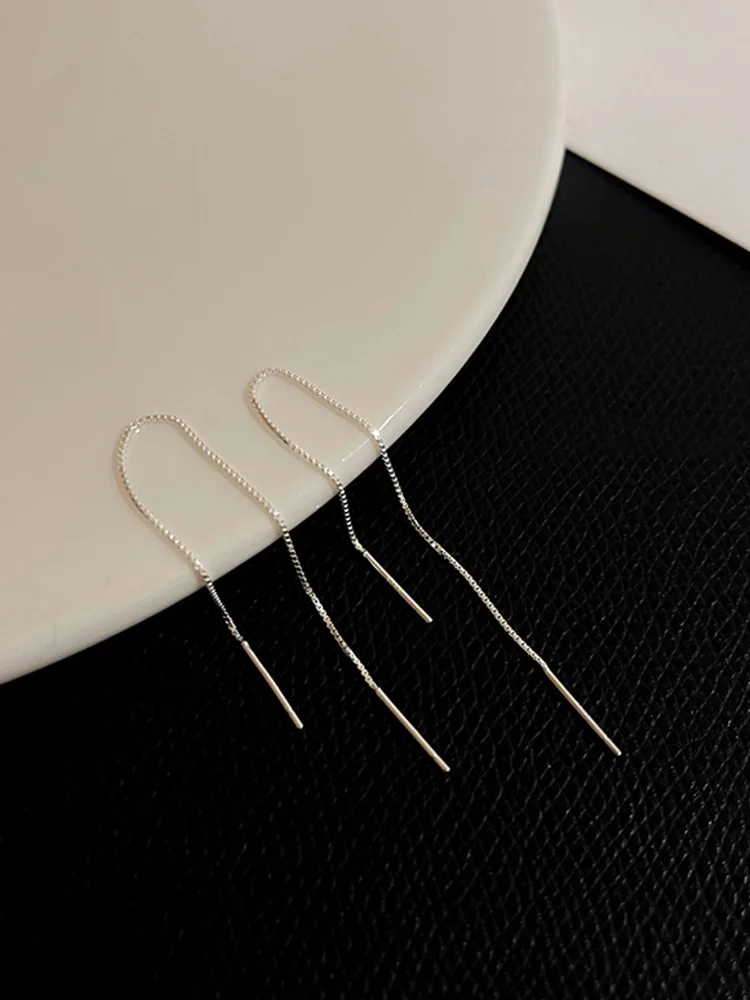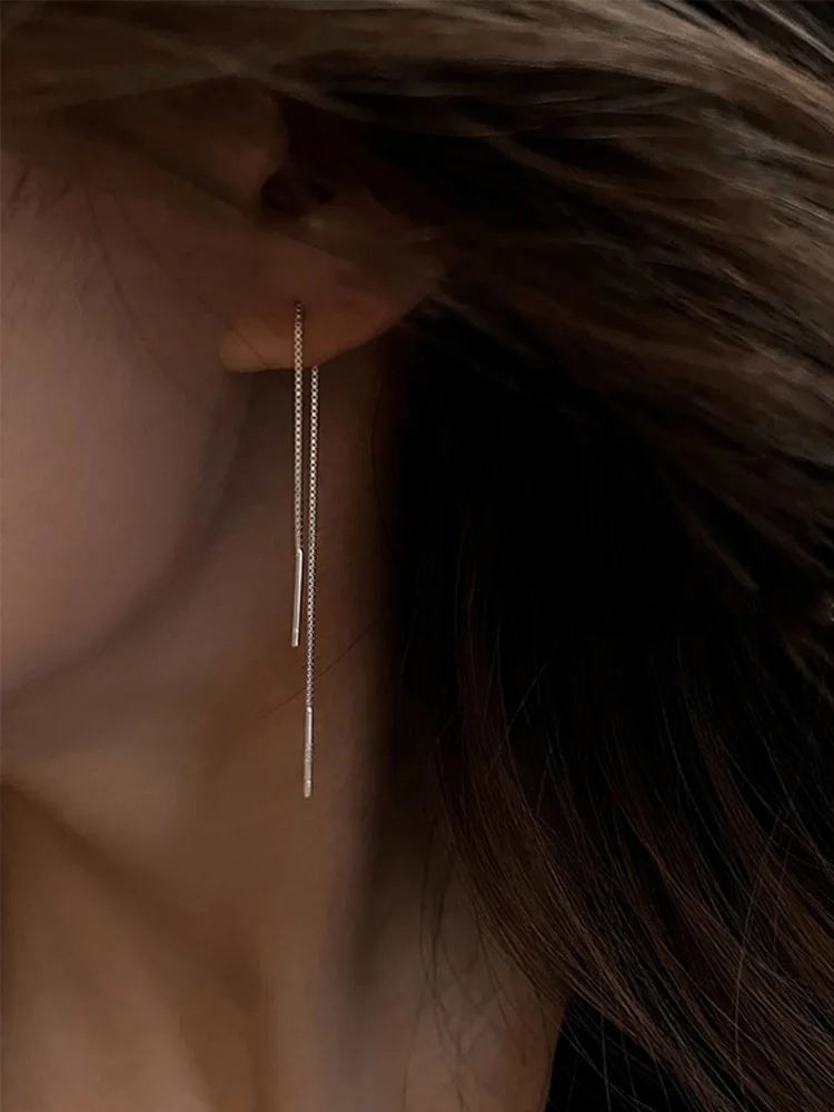 Lunivop New Trendy Simple Silvery Long Chain Tassel Earrings for Women Exquisite Earrings Sweet Elegant Party Jewelry Gifts