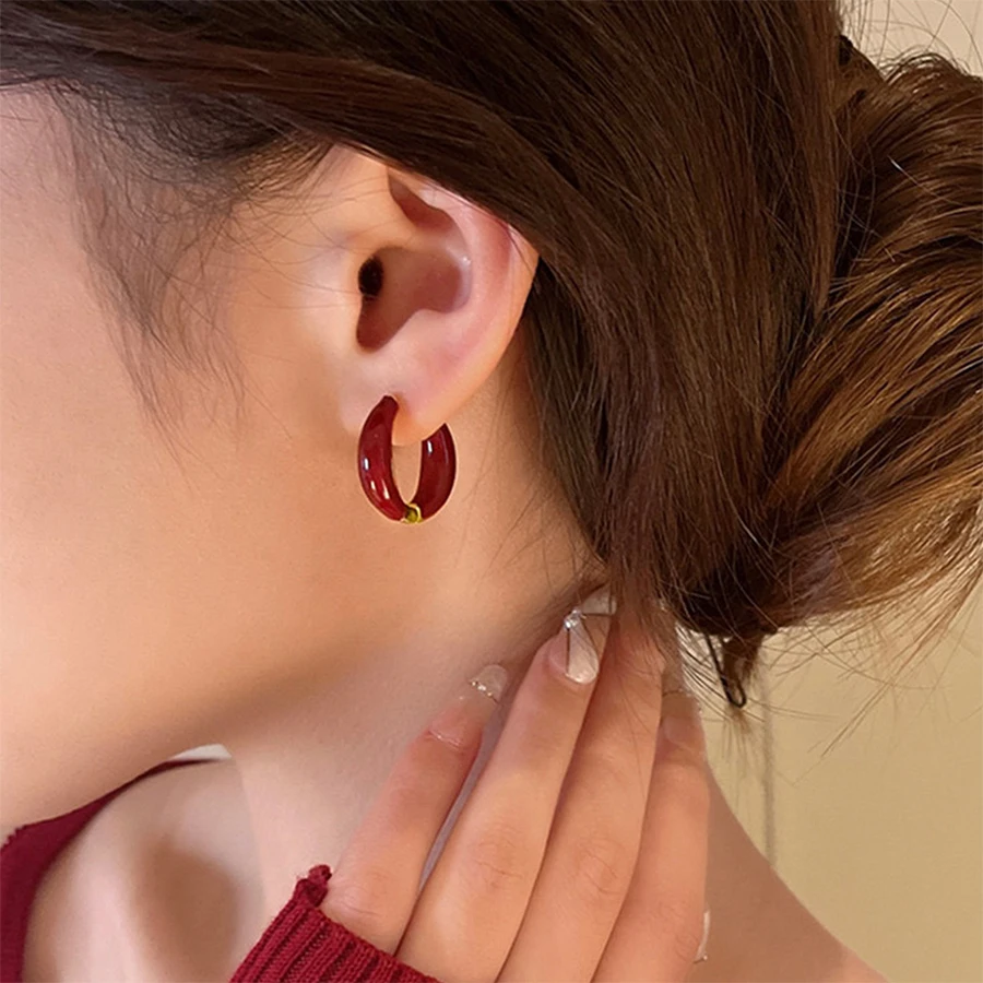 Lunivop New Trendy Simple Solid Color Hoop Earrings for Women Exquisite Copper Studs Niche Design Elegant Party Jewelry Girlfriend Gifts