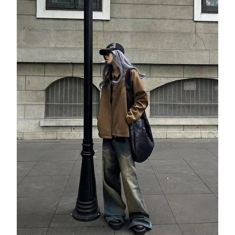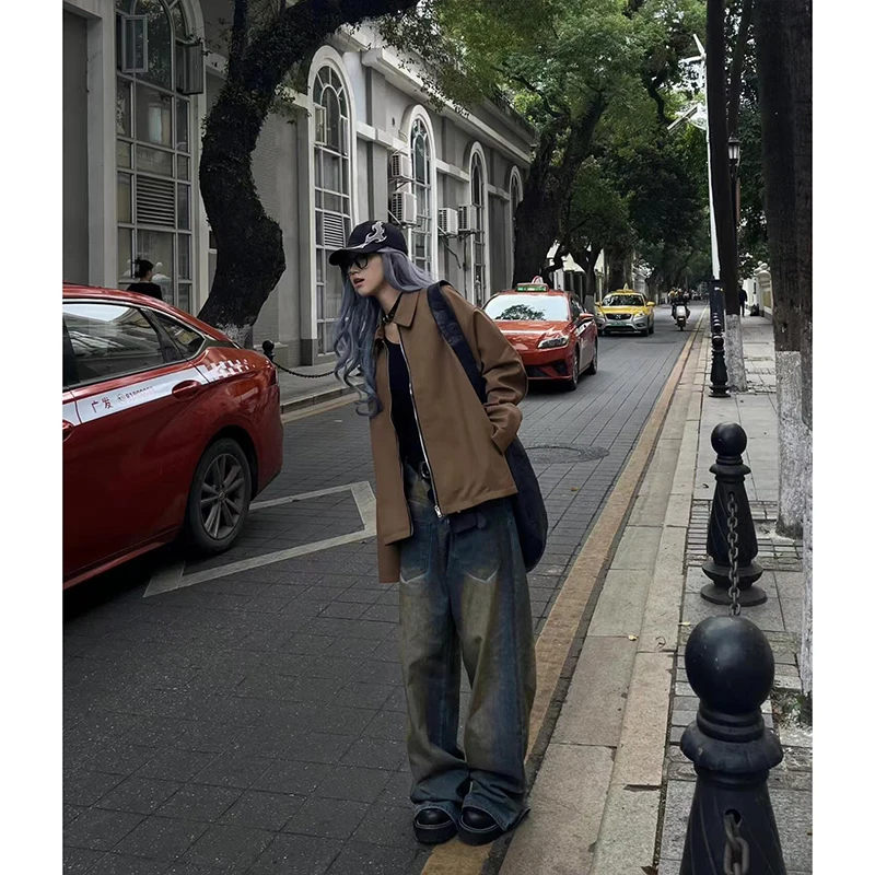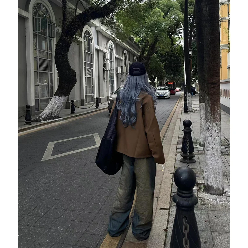 Lunivop New Vintage Blue Jeans Women High Waist Grunge Y2k 90s Streetwear Baggy Casual Korean Fashion Straight Denim Trouser Women