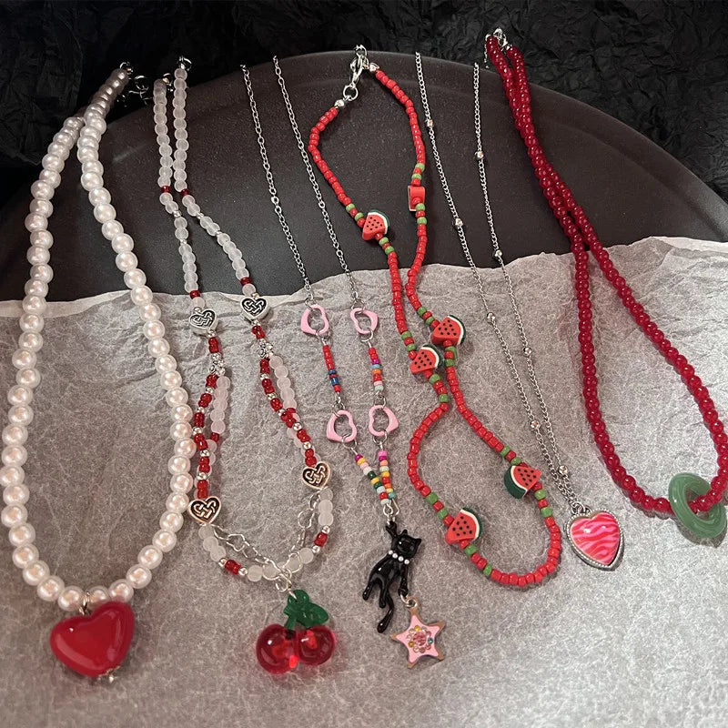 Lunivop New Vintage Fashion Handmade Red Beaded Y2K Necklace Choker Necklaces Adjustable Cute Gifts Jewelry Accessories