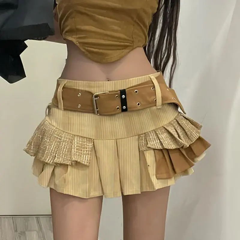 Lunivop Niche Vintage Irregular Design Patchwork Mini Short Skirts Personality Y2k Spice Girl Kawaii All-match Summer Pleated Skirt