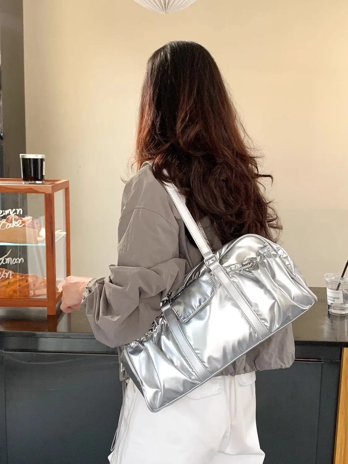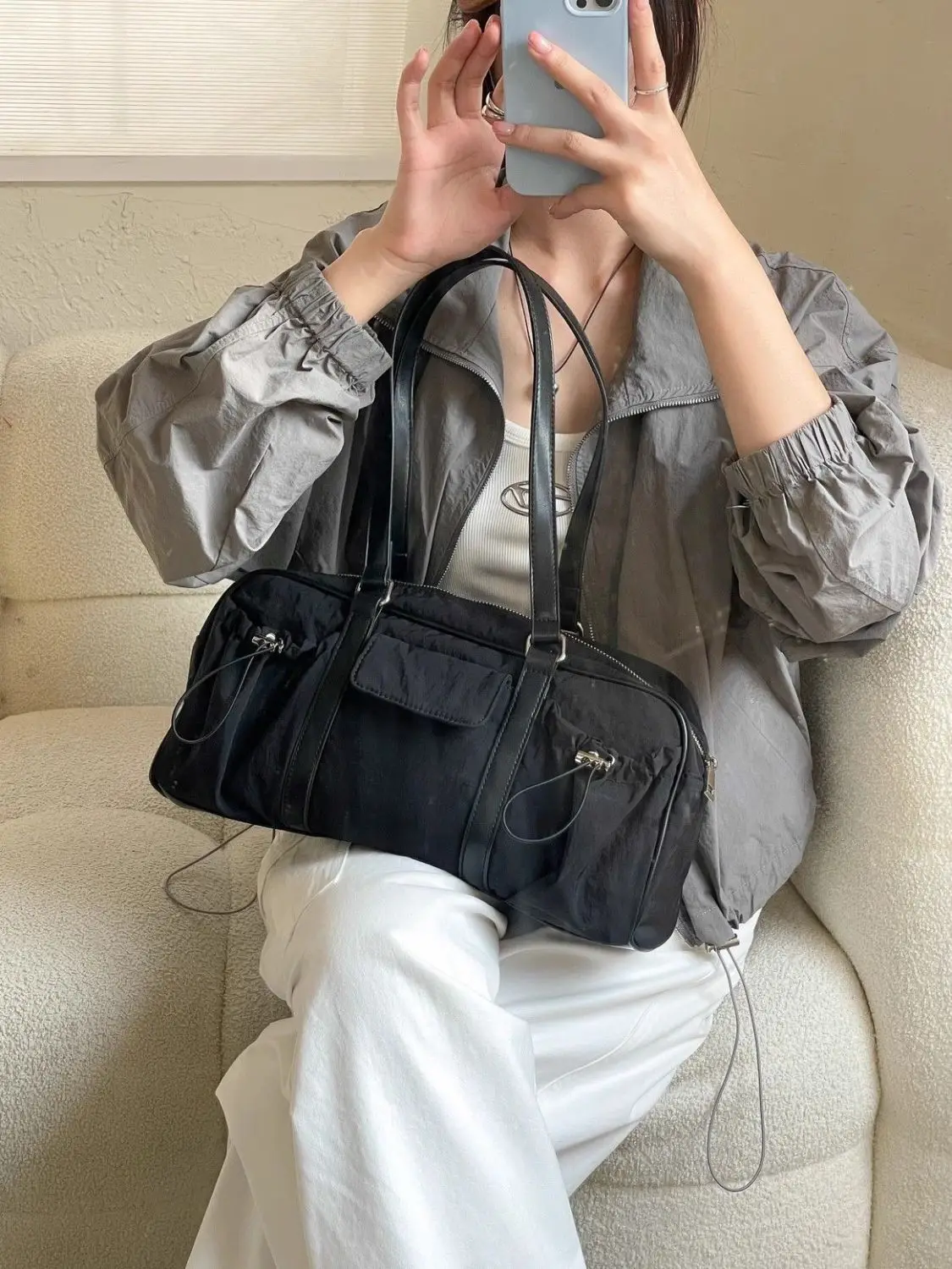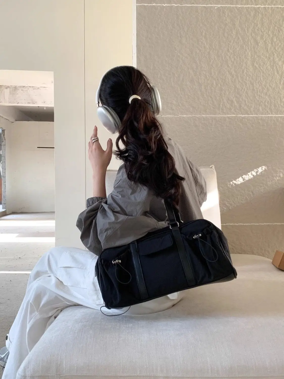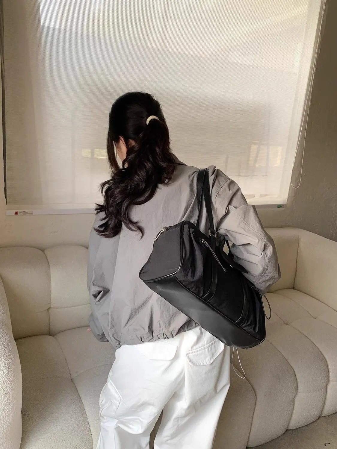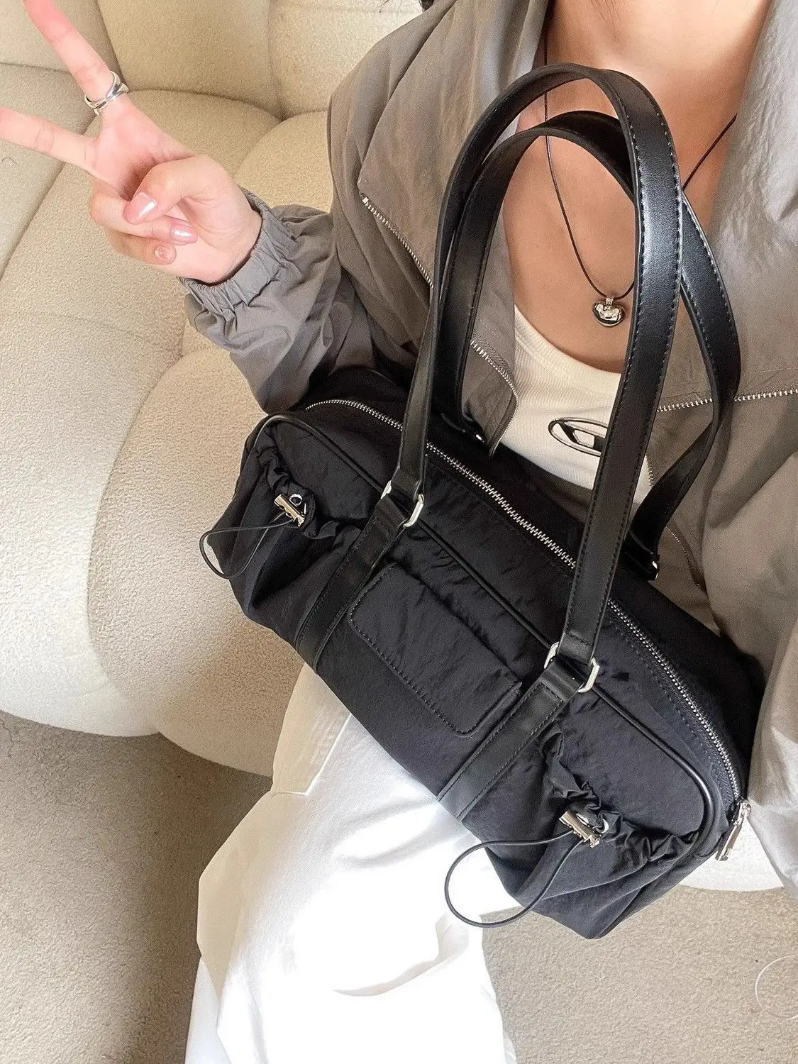 This Korean nylon bag features a trendy pillow design, making it a versatile accessory for any outfit.