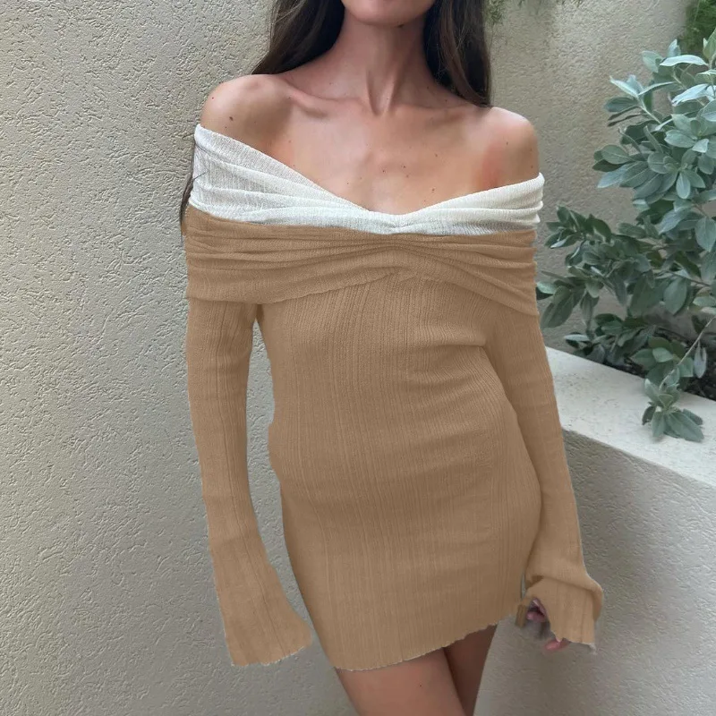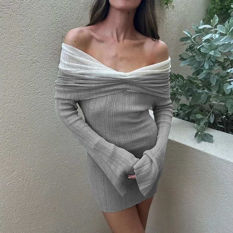 Lunivop Off-shoulder Long Sleeve Sexy Mini Dress For Women Autumn New Strapless Backless Bodycon Club Party Sexy Dress Elegant