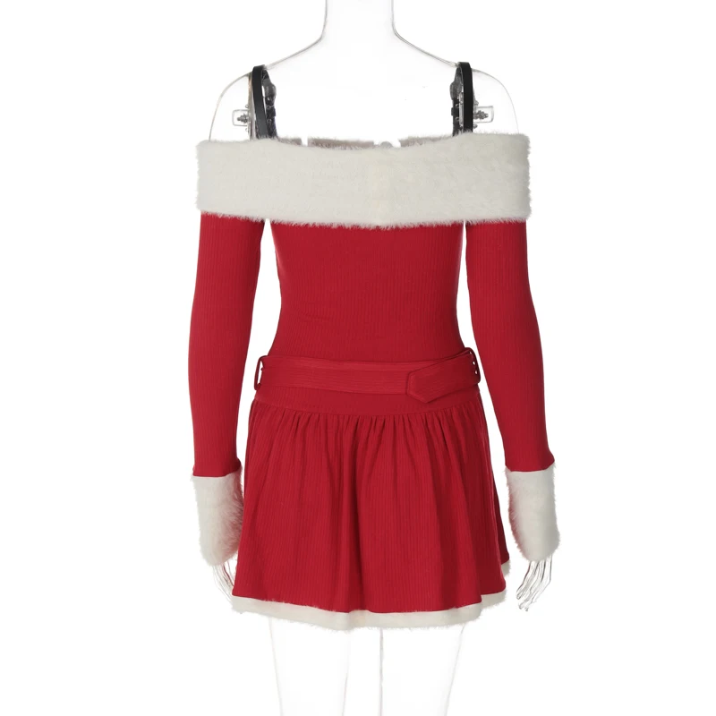 Lunivop Off The Shoulder Belt Feather Button Pleated Mini Women'S Dresses Y2K Fashion Winter Christmas Festival Sporty Clothing