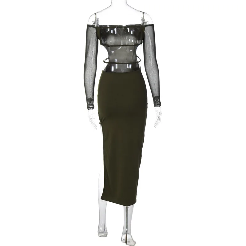 Lunivop Off The Shoulder Long Mesh Sleeve Backless Hollow Out Slit Elegant Women'S Dresses Y2K Streetwear Party Casual Clothing
