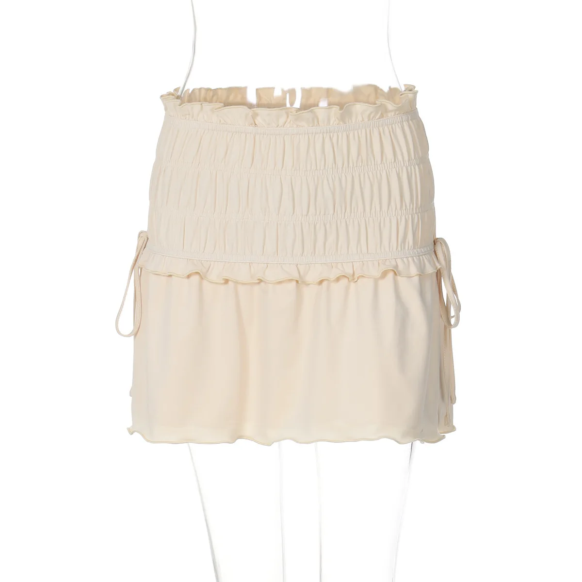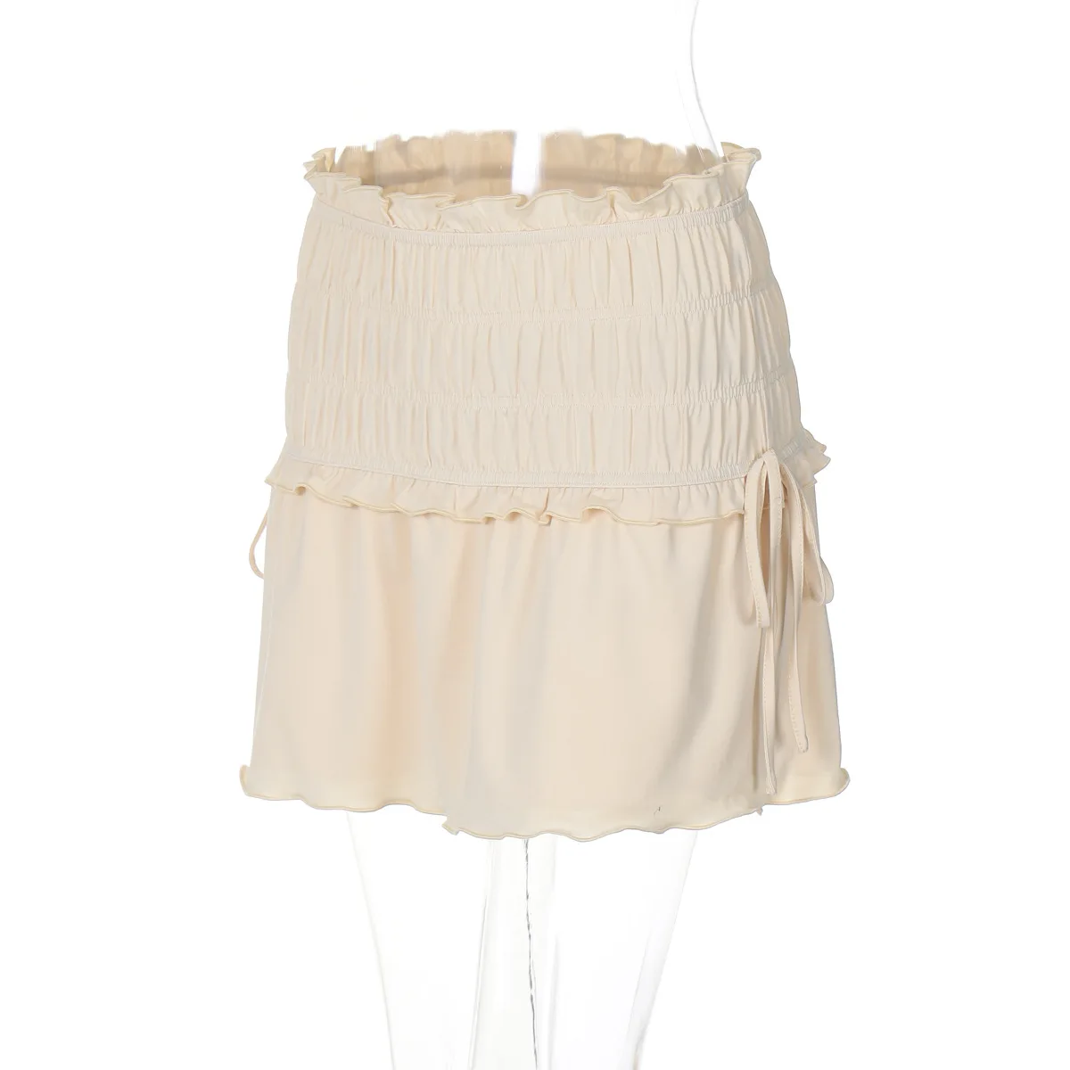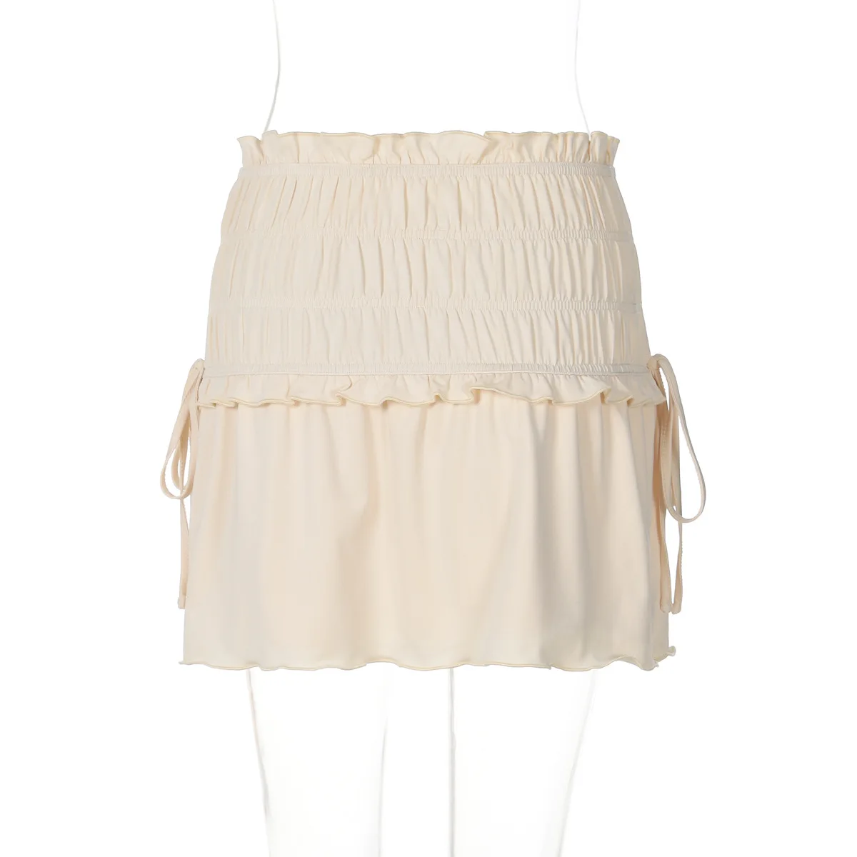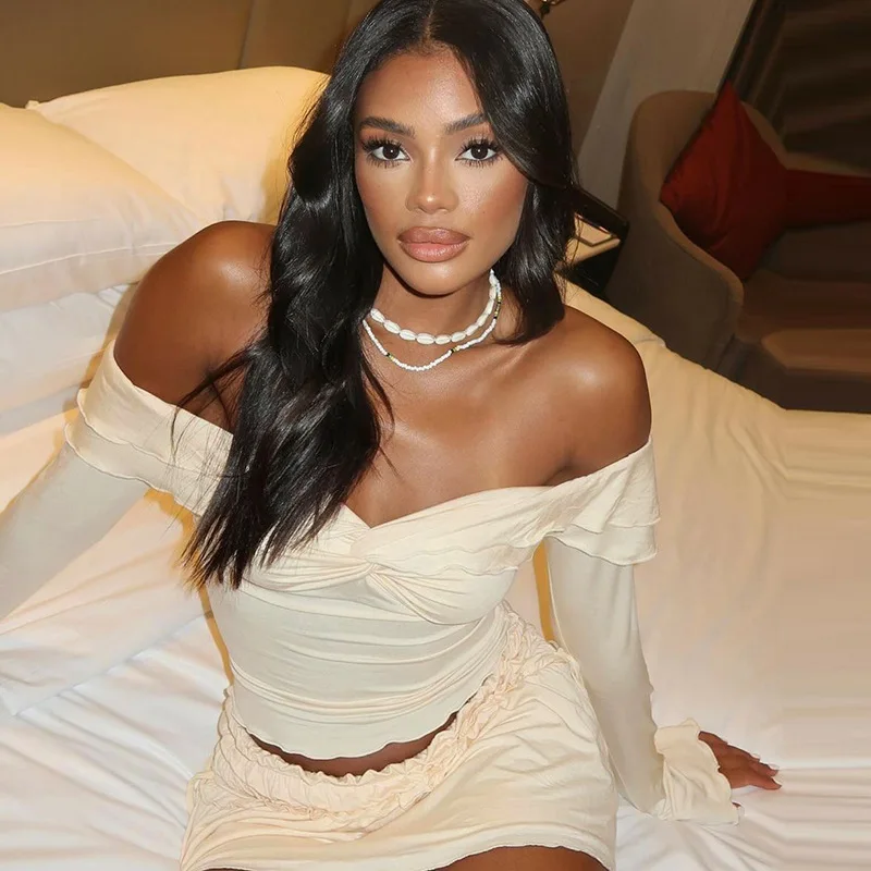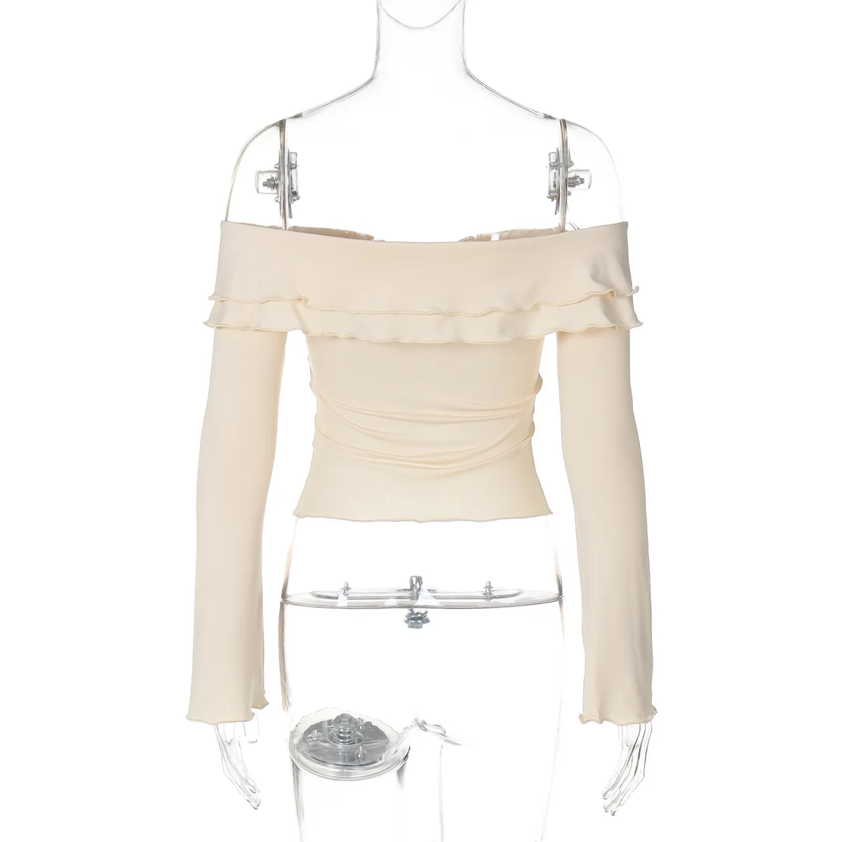 Lunivop Off The Shoulder Long Sleeve Crop Top Elegant Ruffles Short Skirt 2 Piece Set Fashion Y2K Streetwear Casual Clothing
