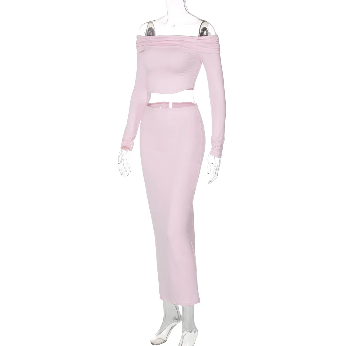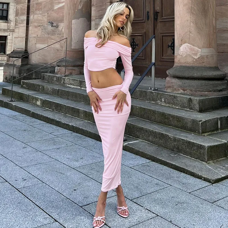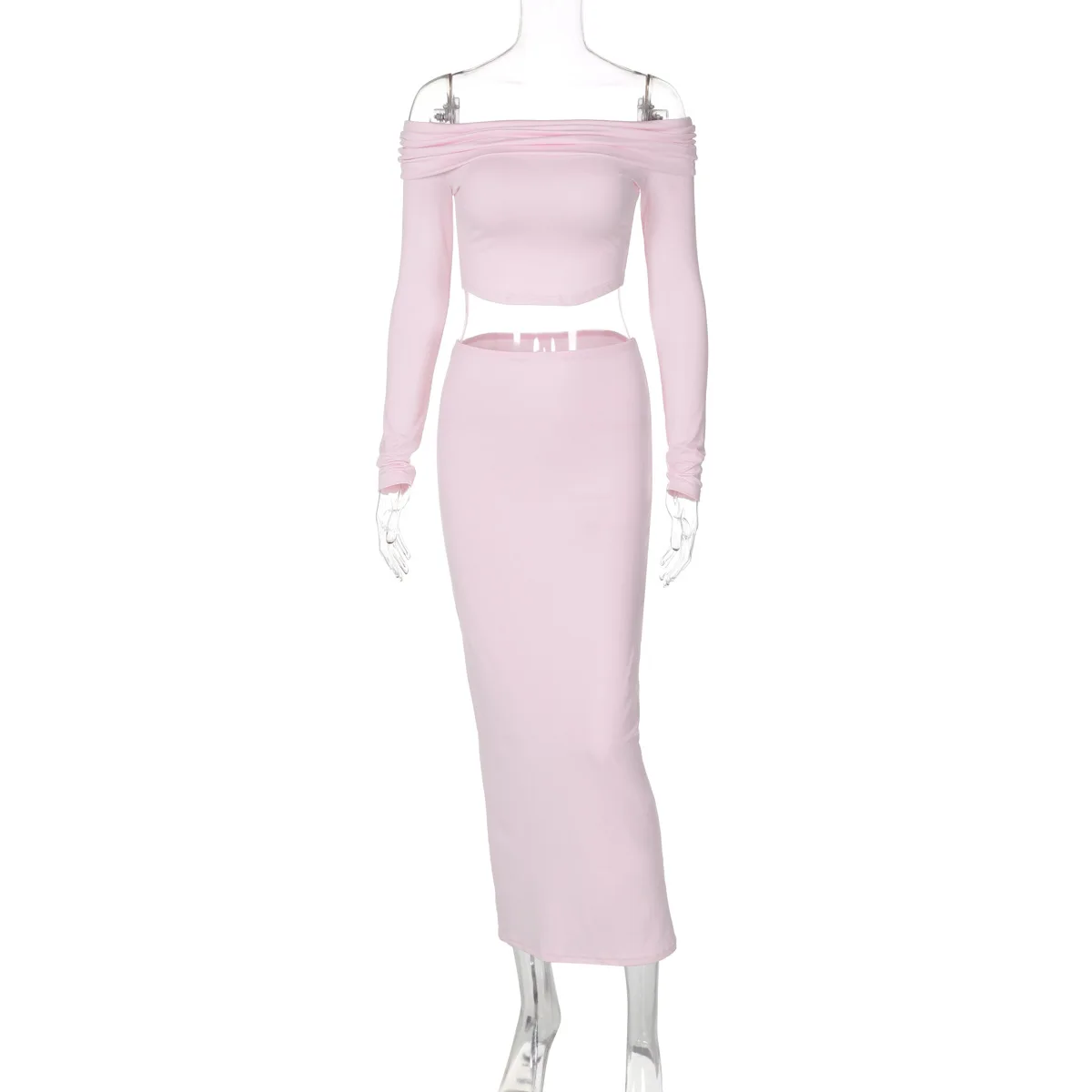 Lunivop Off The Shoulder Long Sleeve Crop Top Long Skirt Women'S Sets Elegant Evening Casual Clothes Wholesale Fashion Outfit