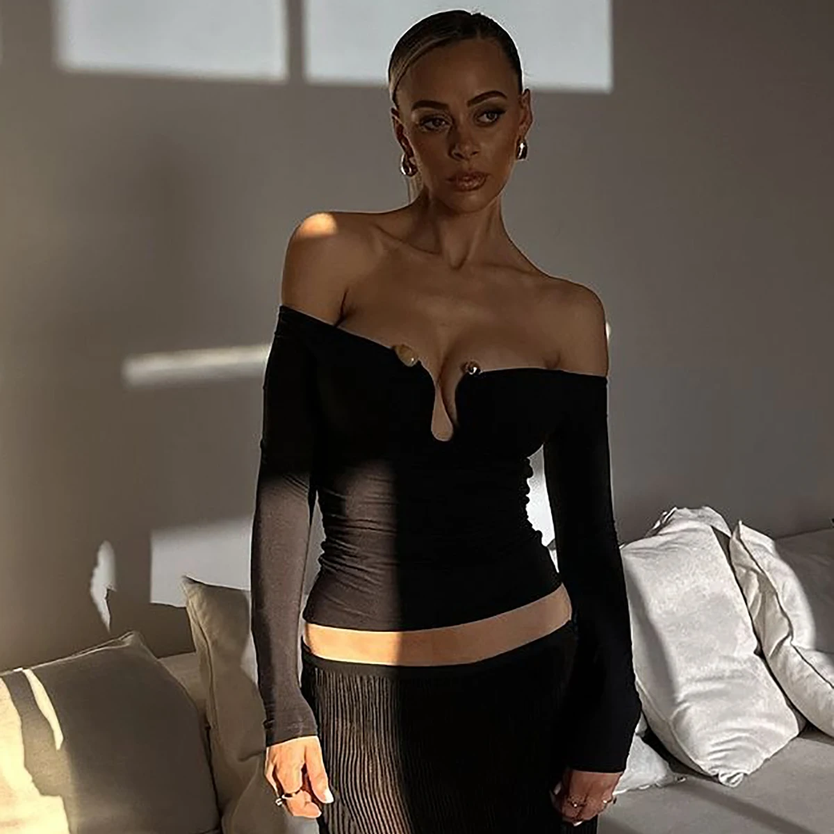 Lunivop Off The Shoulder Long Sleeve Hollow Out Slim Women'S Tops Tshirt Y2K Streetwear Casual Clothing Wholesale Korean