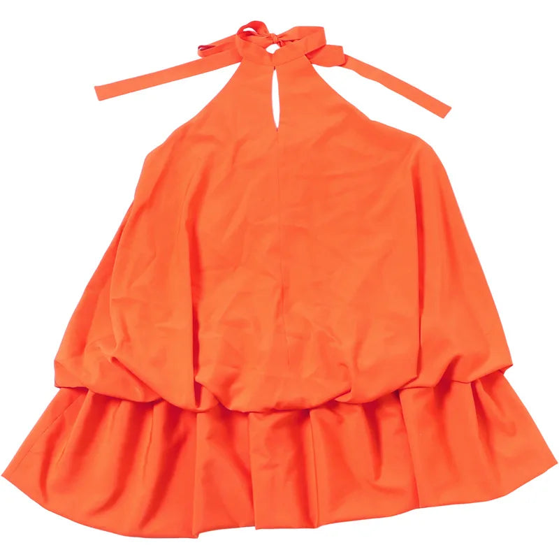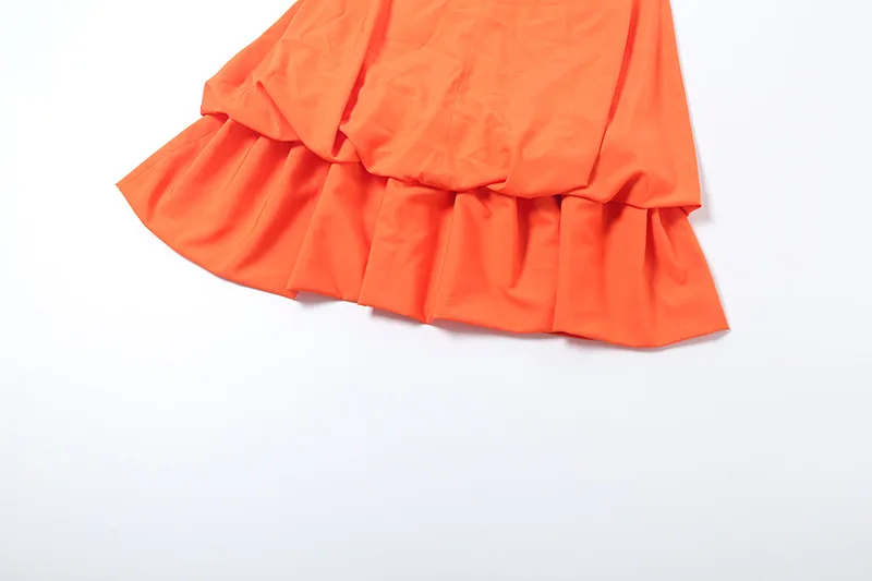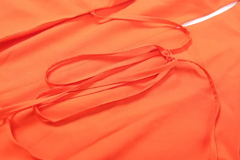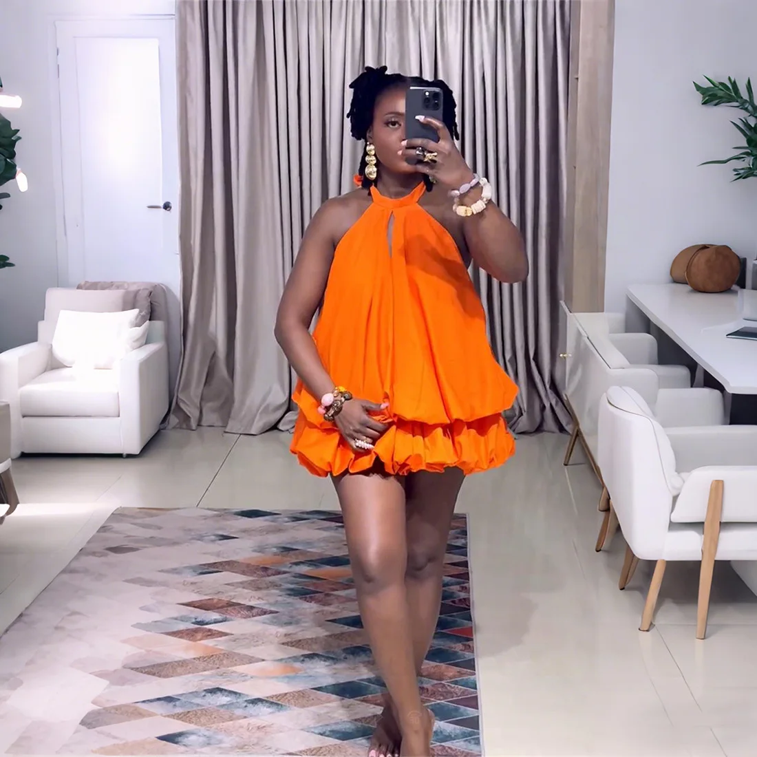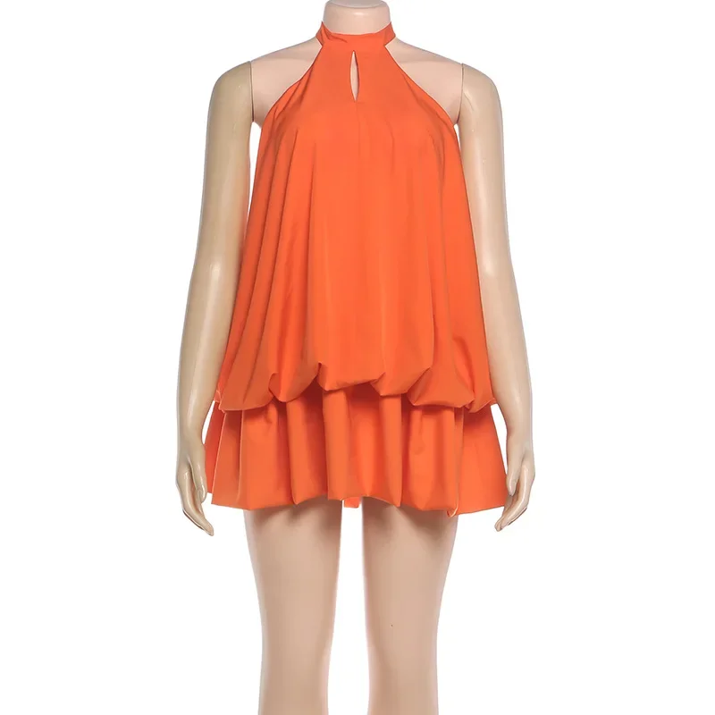 Lunivop Orange Lace Up Halter Backless Mini Cake Dress Hollow Out Sleeveless Pleated Lantern Party Outfits Women Solid Casual Streetwear