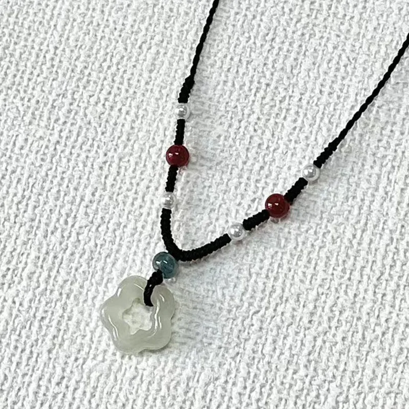 Lunivop Peace Buckle Pendant Necklace Hollow Jade Charms Necklace Chinese Style Clavicle Chain Leather Rope Sweater Necklace