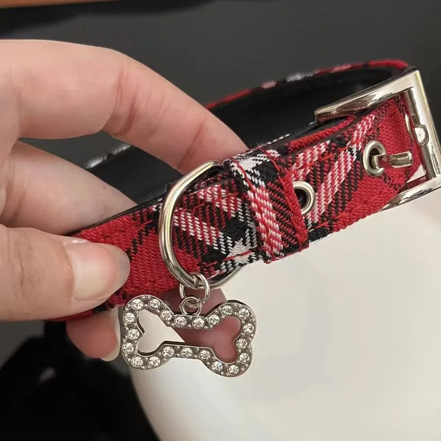 Lunivop Pet Collar Scottish Plaid Dog Collar Classic Red PU Leather Earthy Yellow Twill Dog Pet Supplies Adjustable Pet Collar