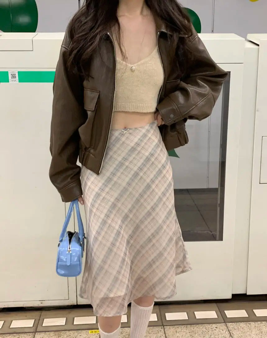 Lunivop Plaid Skirt Vintage Women Elegant Sweet Korean Style Mid Skirt Y2k Harajuku fashion A-line summer Aesthetics Skirts