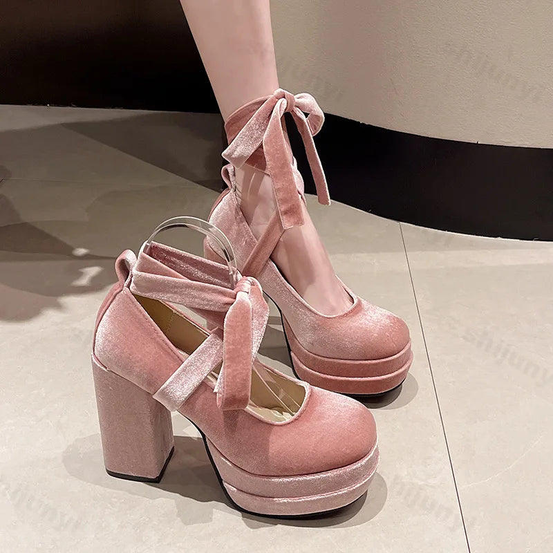 Lunivop Platform Mary Janes Shoes Women Suede Luxury High Heel Lace Up Trend Lolita Shoes Elegant Chunky Party Pumps Zapatos De Mujer
