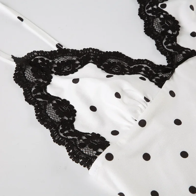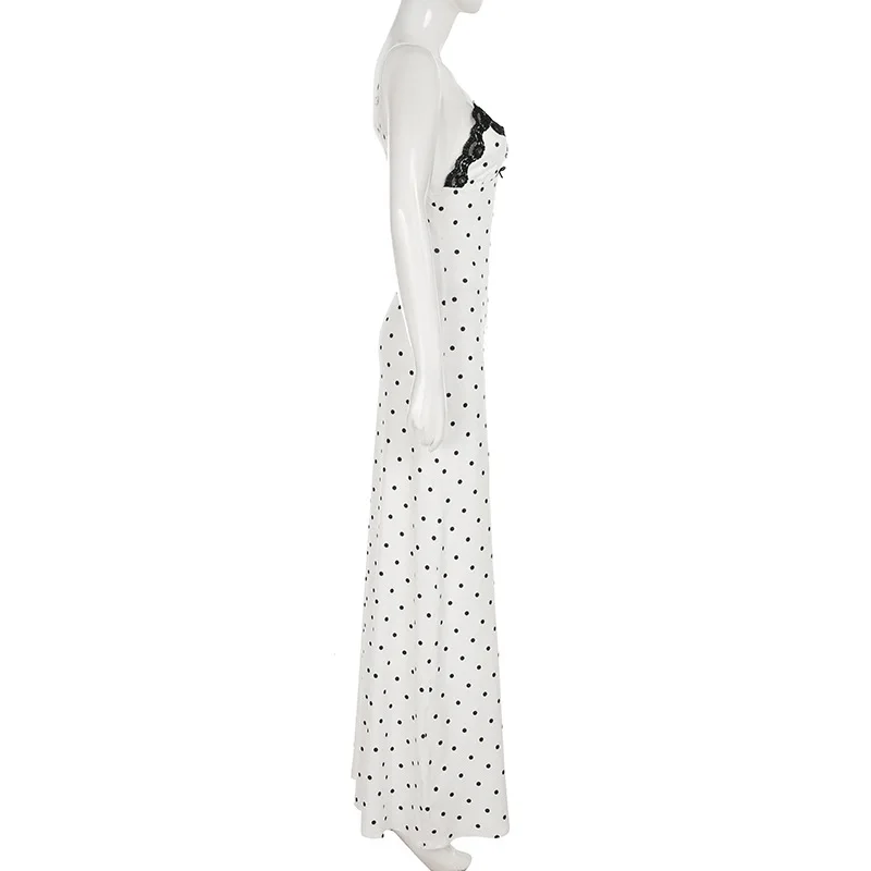 Lunivop Polka Dot Lace Patchwork Maxi Dress Women Summer Fashion Backless Slim Strap Sexy Robes Female Elegant Party Long Dress 2025