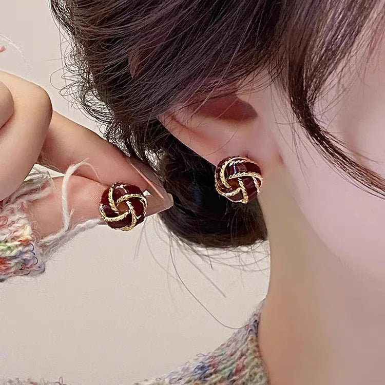Lunivop Poupular Red Velvet Hoop Earrings for Women New Oversized Exquisite Red Brown Khaki Color Simple Round Circle Girl Earrings