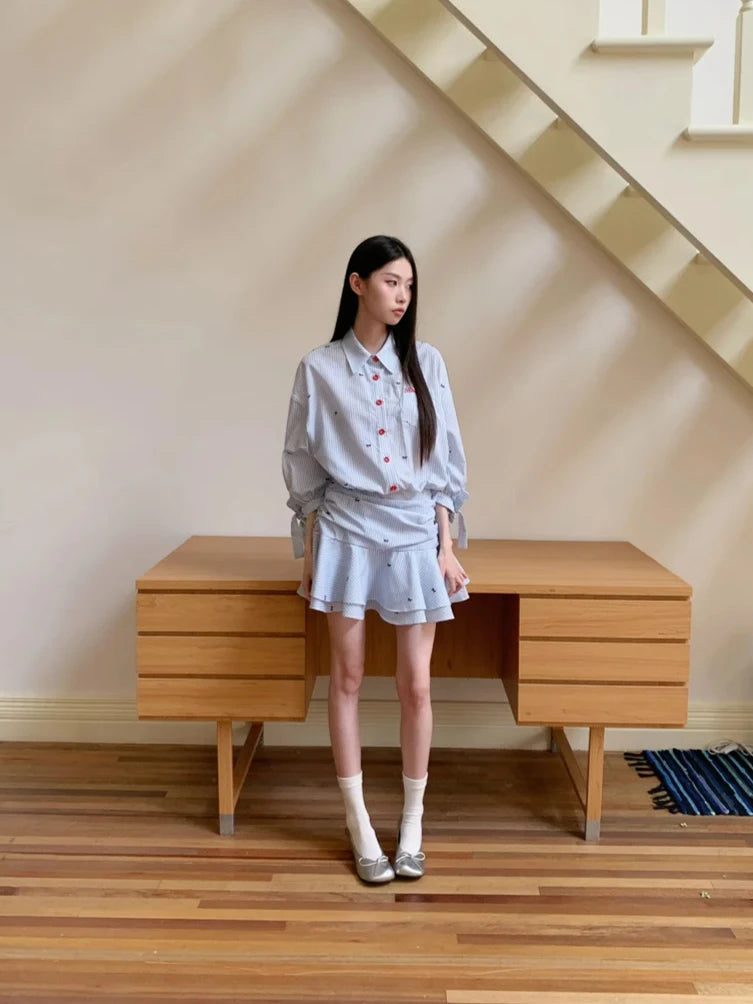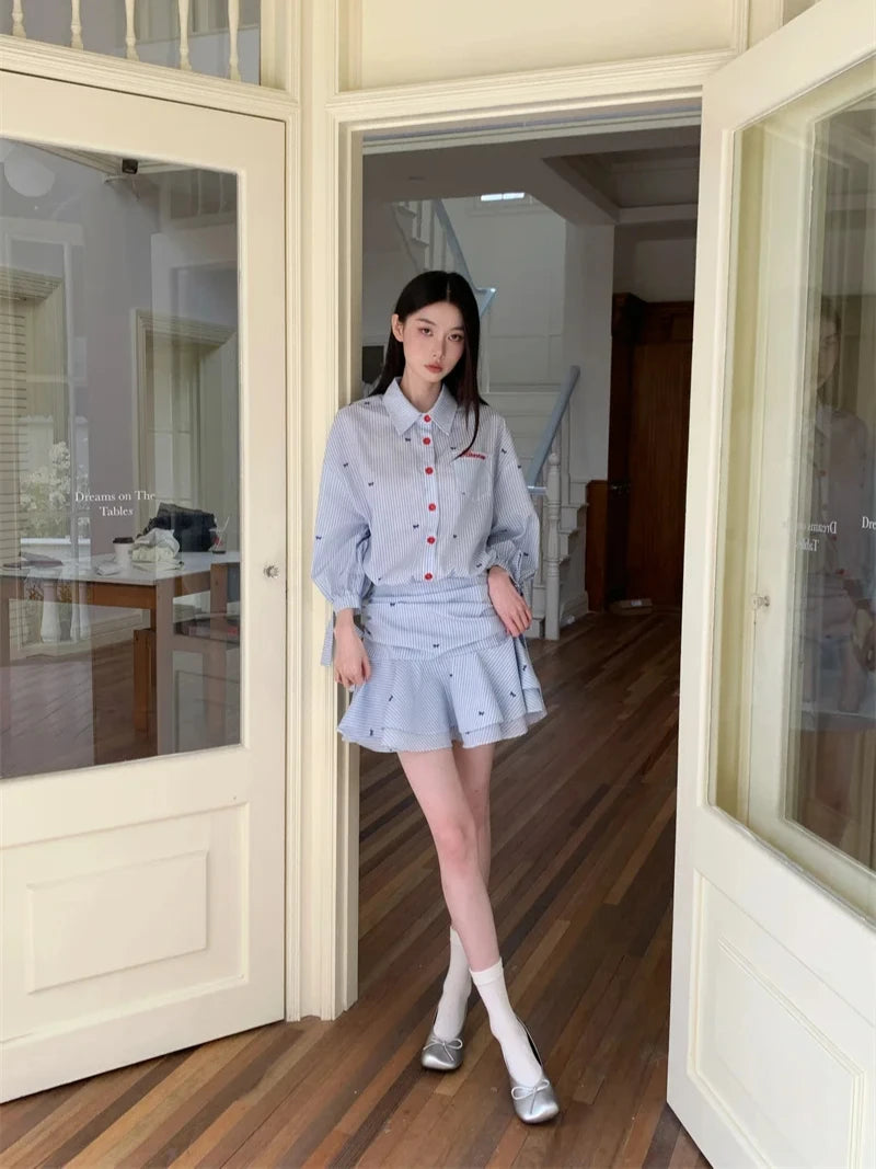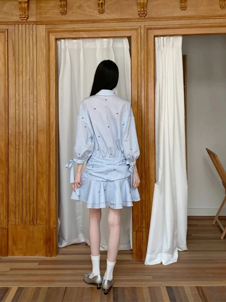 Lunivop Preppy Blue Striped Button Up Shirt Dress For Woman Fall Clothes Ruffles Tunics Mini Short Dress Youth Clothing