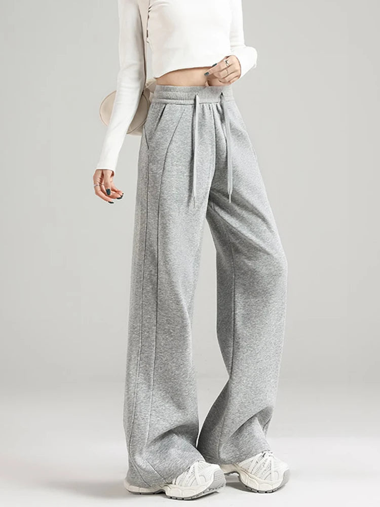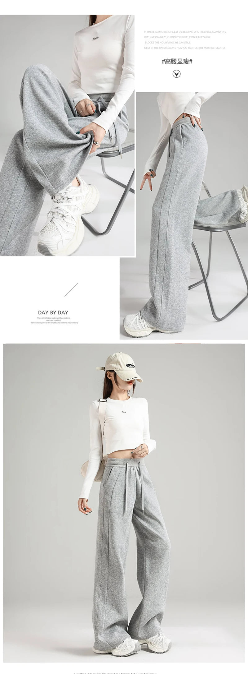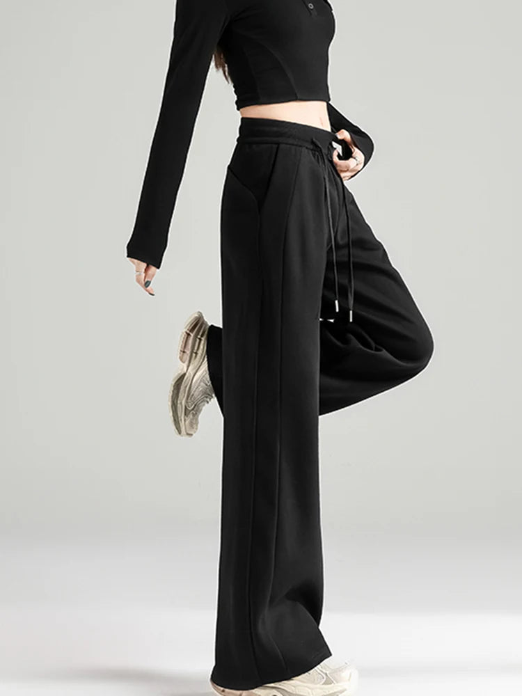 Lunivop Preppy Style Black Sweatpants Women Vintage High Waist Loose Straight Pant Korean Casual Fall Lace Up Wide Leg Trousers New