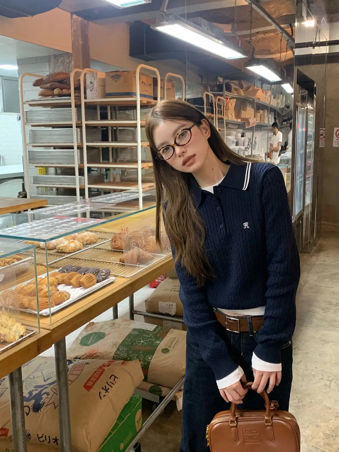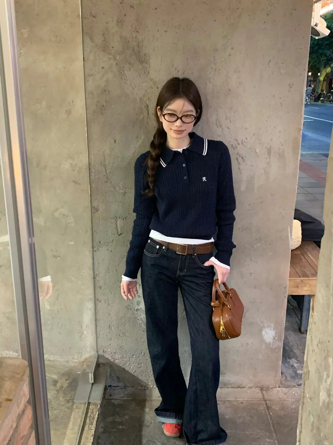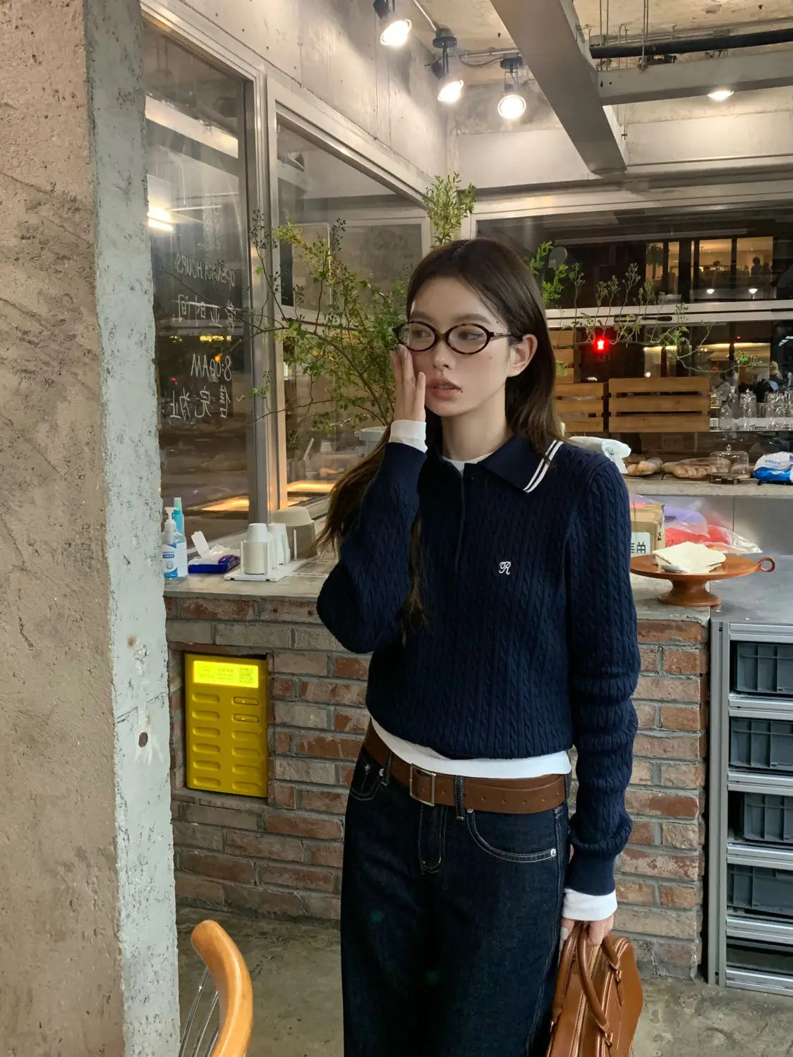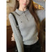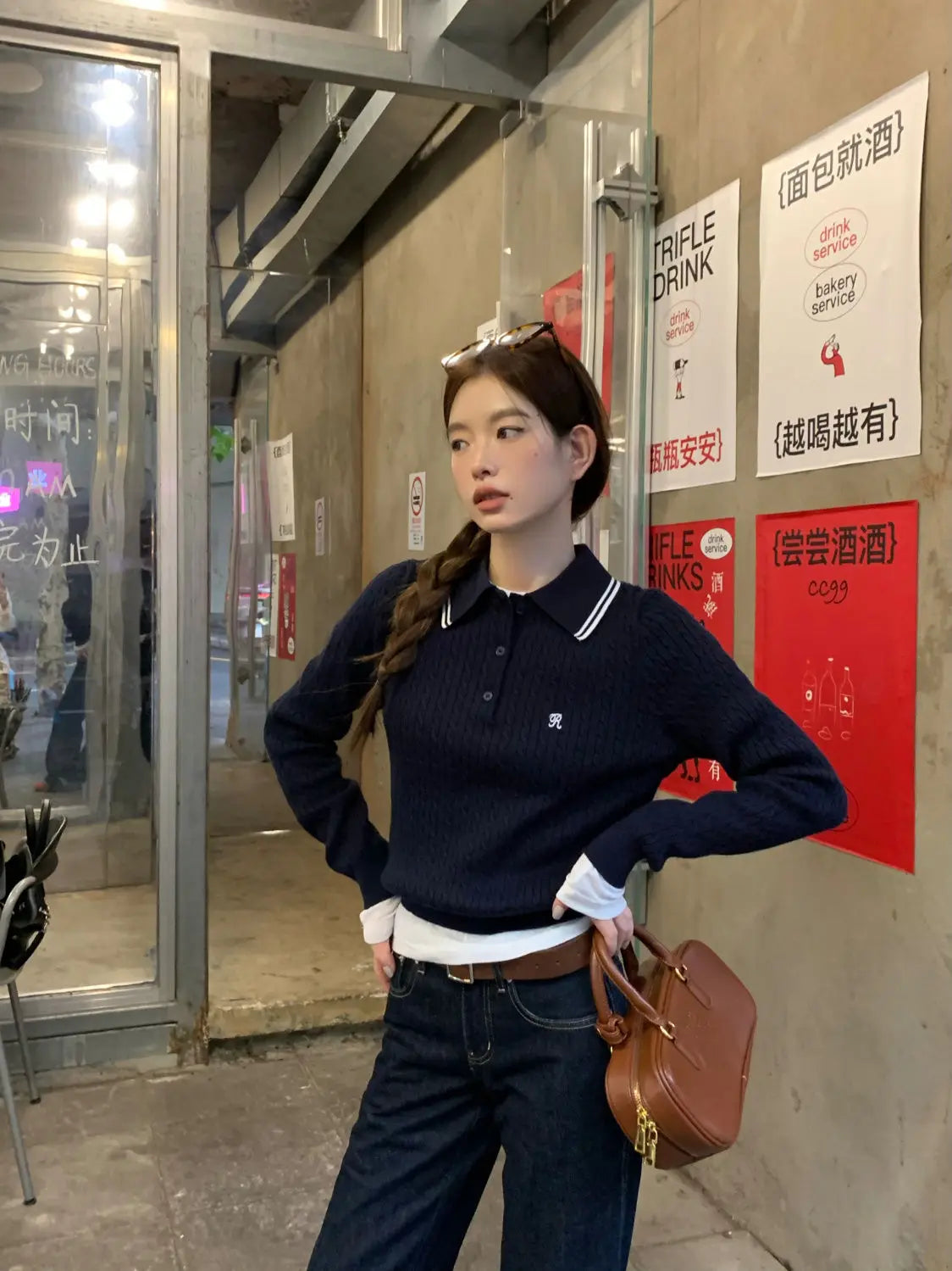 Lunivop Preppy Style Embroidery Sweaters Women Old Money Style Korean Knitted Pullover Vintage Long Sleeve Gray Polo Jumpers